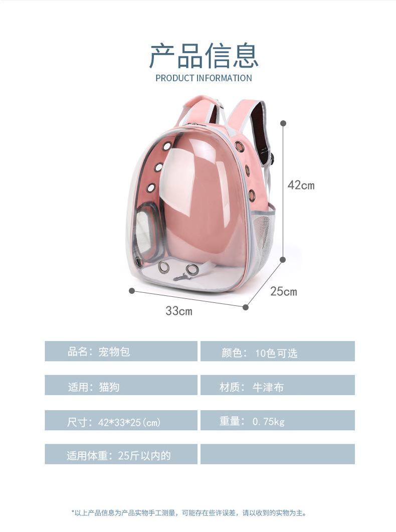 국경을 넘는 파노라마 투명 스페이스 고양이 가방, 대용량 강아지 배낭, 고양이 외출용 휴대용 통기성 애완동물 가방 도매