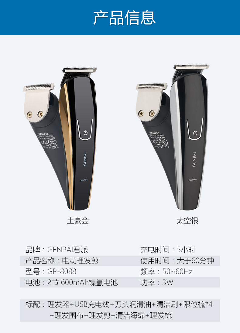 남성용 다기능 이발기, 오일헤드 커팅, 코털 면도, 헤어 트리머, USB 충전식 전기 이발기