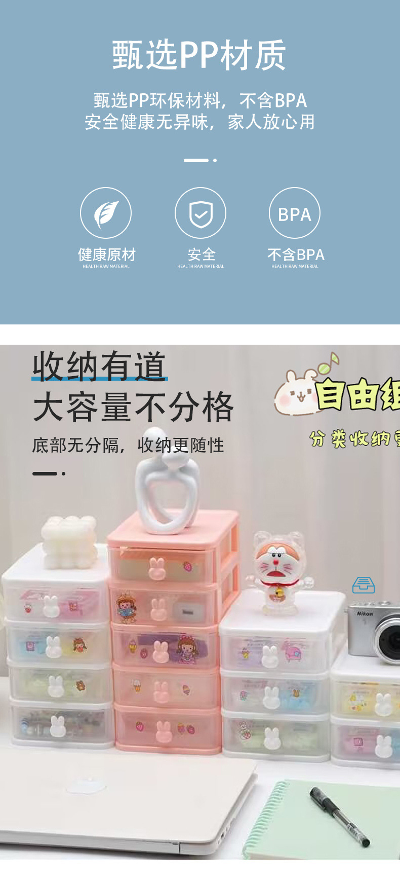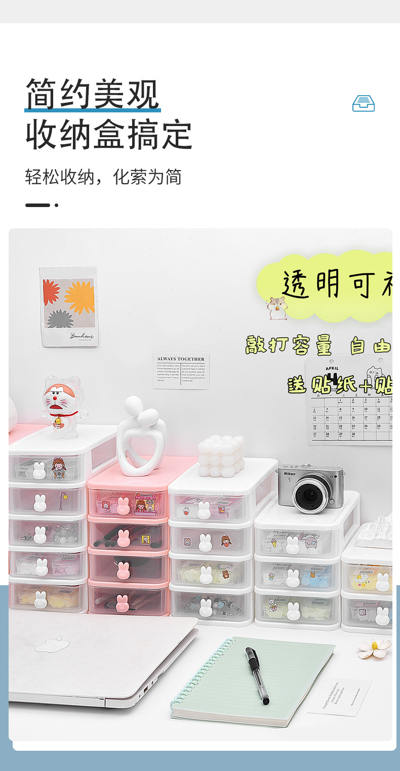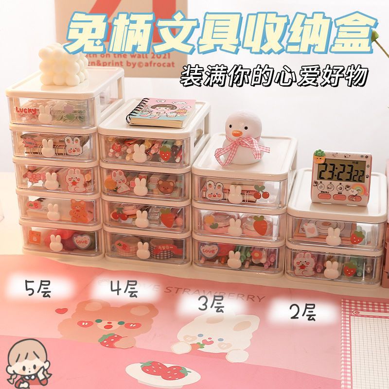 에 바탕 화면 토끼 저장 상자 서랍 학생 기숙사 책상 마스크 화장품 문구 조직 상자 도매스토어 가기