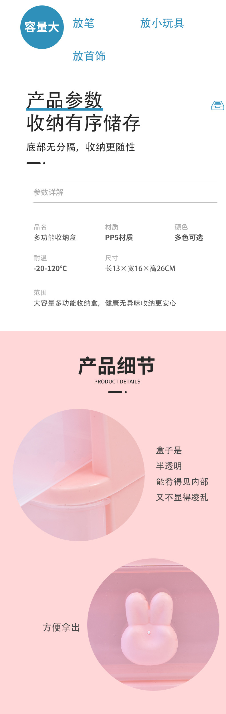 • 토끼 저장 상자-핑크 3 층 [1 스티커 보내기]]