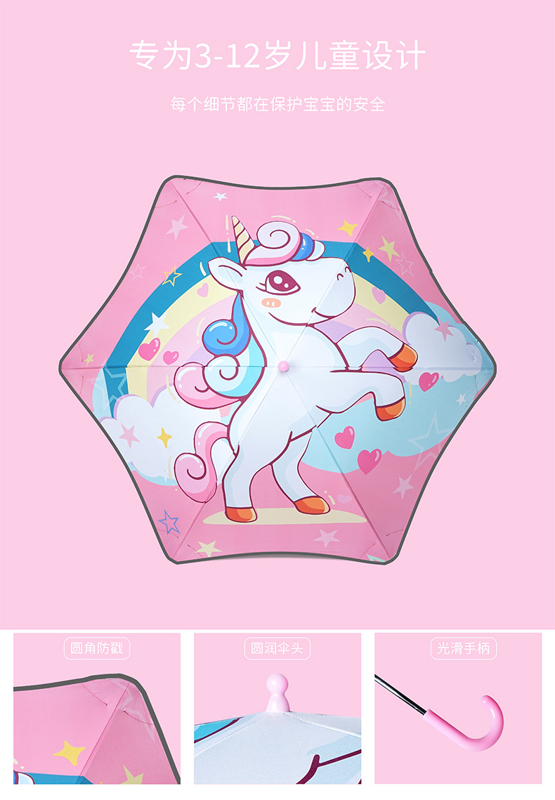 만화 스트레이트 막대 둥근 어린이 우산 펑크 방지 유치원 소년 소녀 초등학생 긴 경량 우산 처리