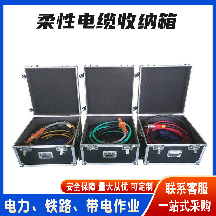 旁路作业中,柔性电缆收纳箱易于存放高压线缆、柔性电缆等,铝合金材质手提箱,质量可靠,方便携带。