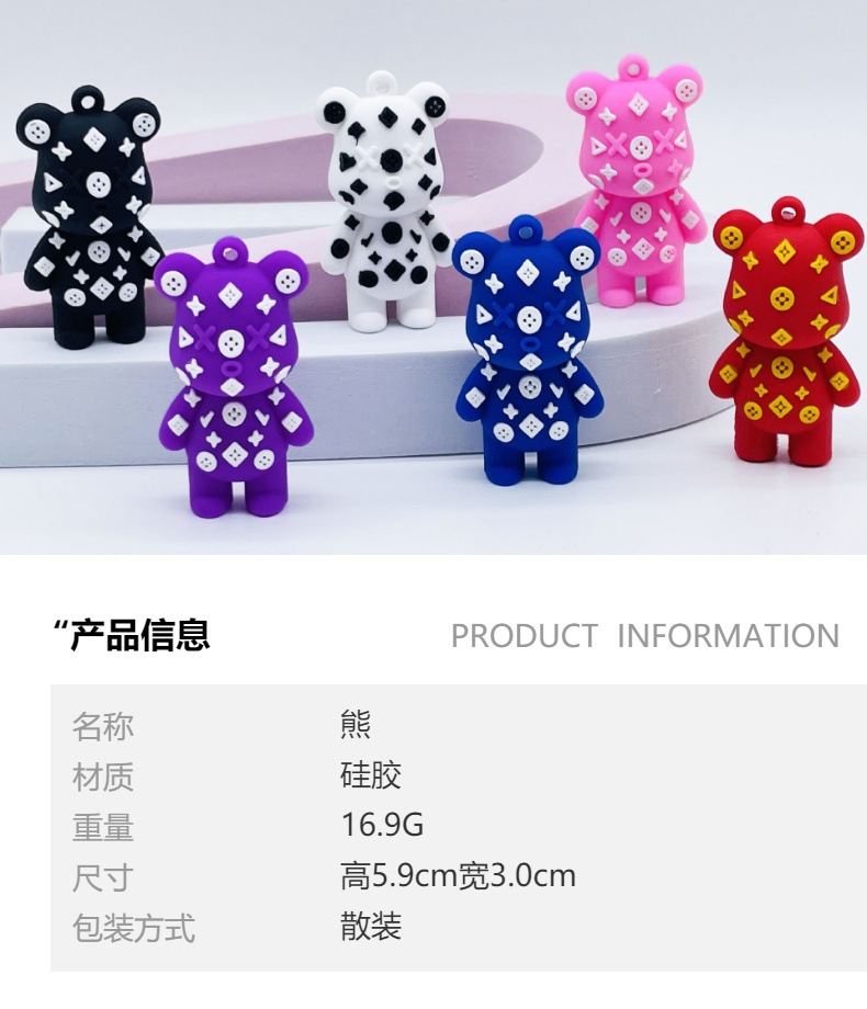 틈새 감각 가벼운 럭셔리 폭풍 곰 키 체인 액세서리 PVC 소프트 고무 소재 커플 자동차 배낭 키 체인스토어 가기