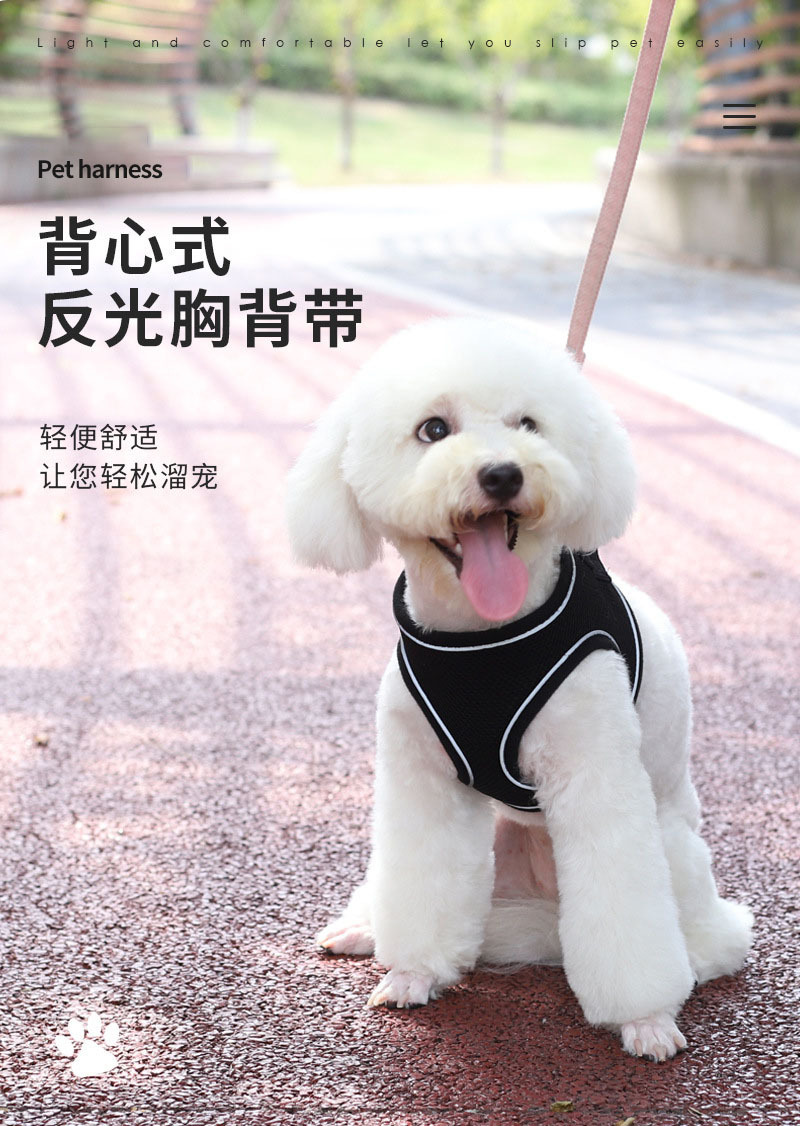 애완 동물 가슴 스트랩 크로스 보더 조끼 소형 중형 및 대형 개 반사 애완 동물 가슴 스트랩 가죽 끈 개 가죽 끈 도매스토어 가기