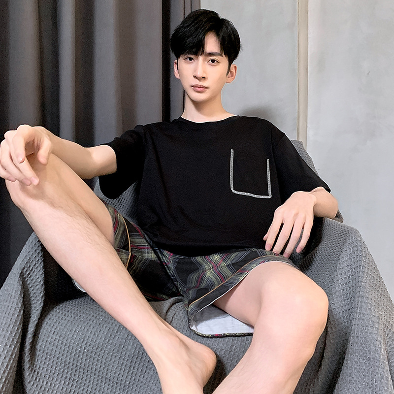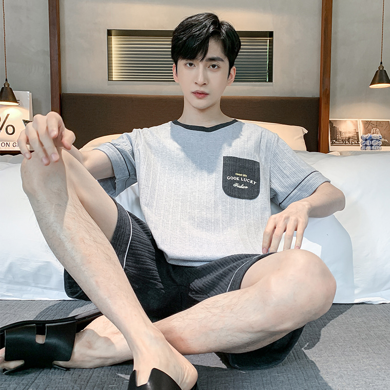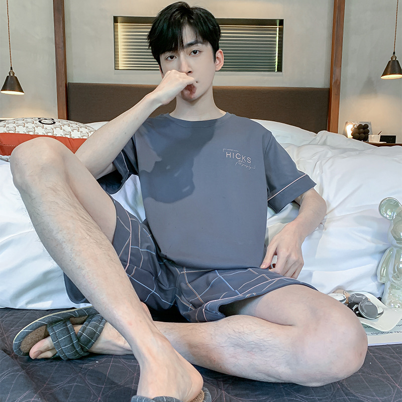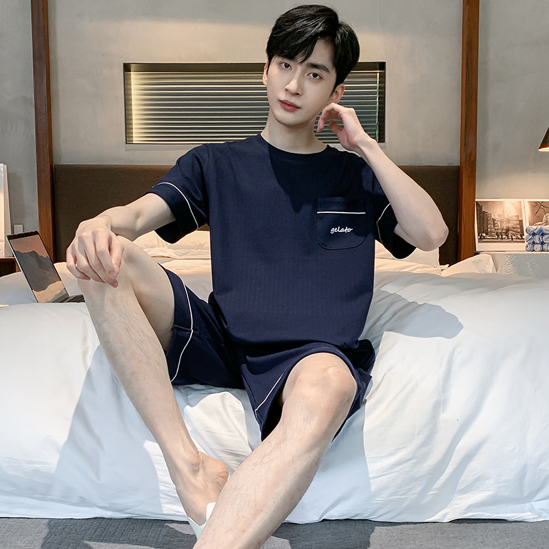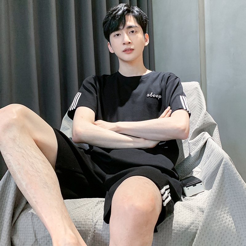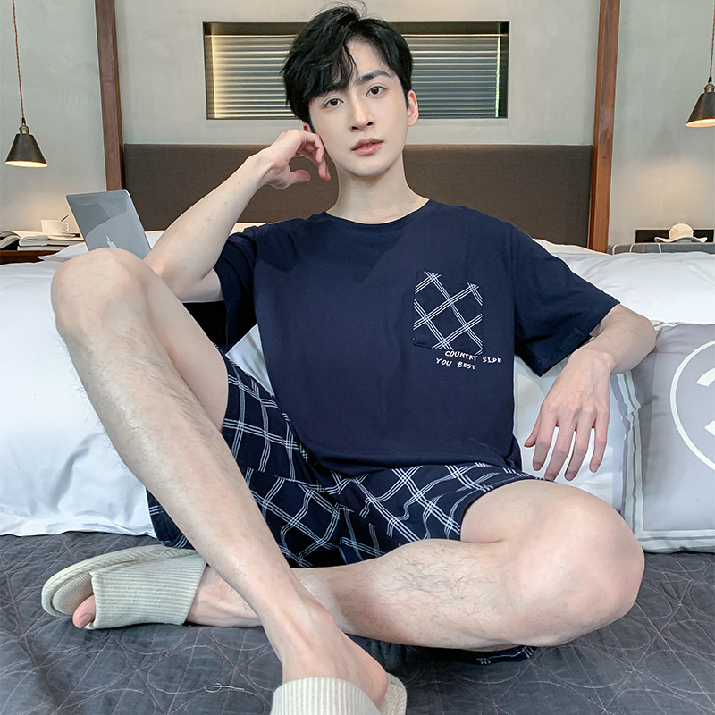 Chun Baifen 남자의 잠옷 남자의 여름 반팔 면 남자의 여름 얇은 겉옷 소년을위한 플러스 사이즈 가정 옷을 입고스토어 가기
