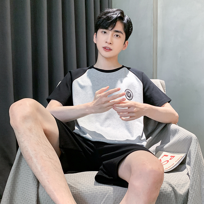 Chun Baifen 남자의 잠옷 남자의 여름 반팔 면 남자의 여름 얇은 겉옷 소년을위한 플러스 사이즈 가정 옷을 입고