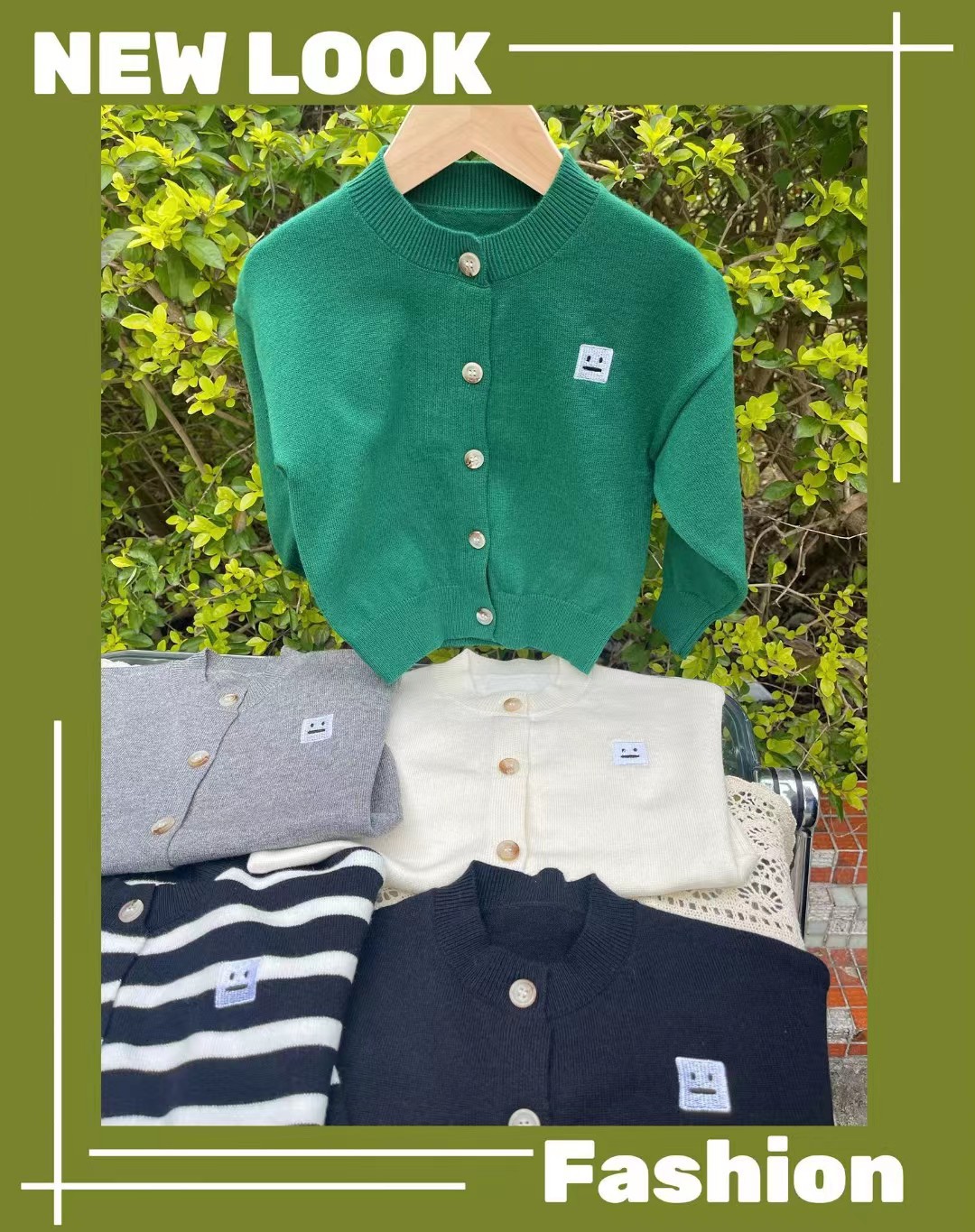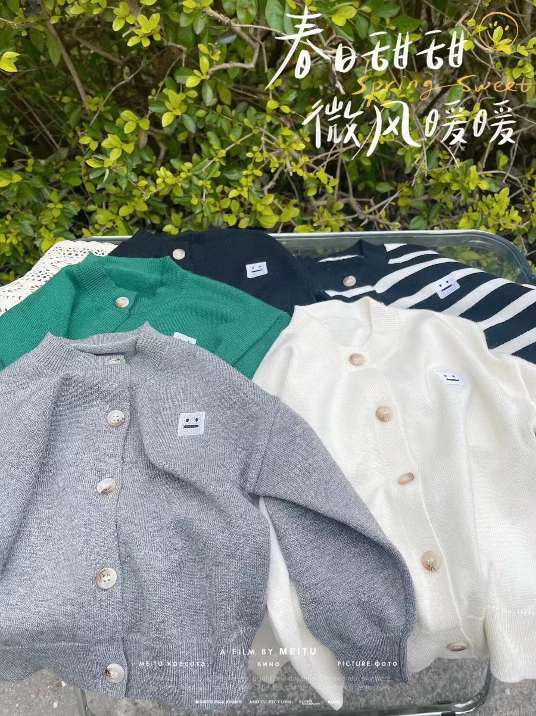 어린이 니트 코트 봄 코트 소년과 소녀 부모-자식 캐주얼 스마일 탑 앙고라 카디건 23007