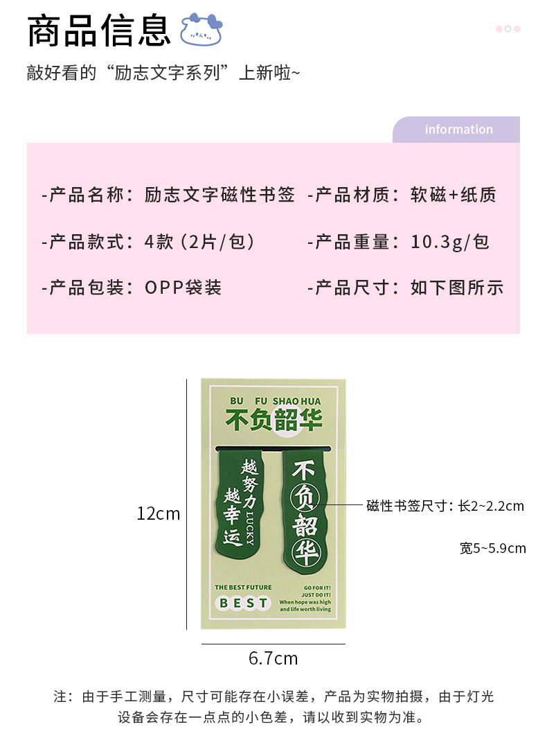 텍스트 자석 북마크 중국풍 심플 축복의 의미가 담긴 보상 문구 페이지 클립 인덱스 클립 문화창의적인 작은 선물