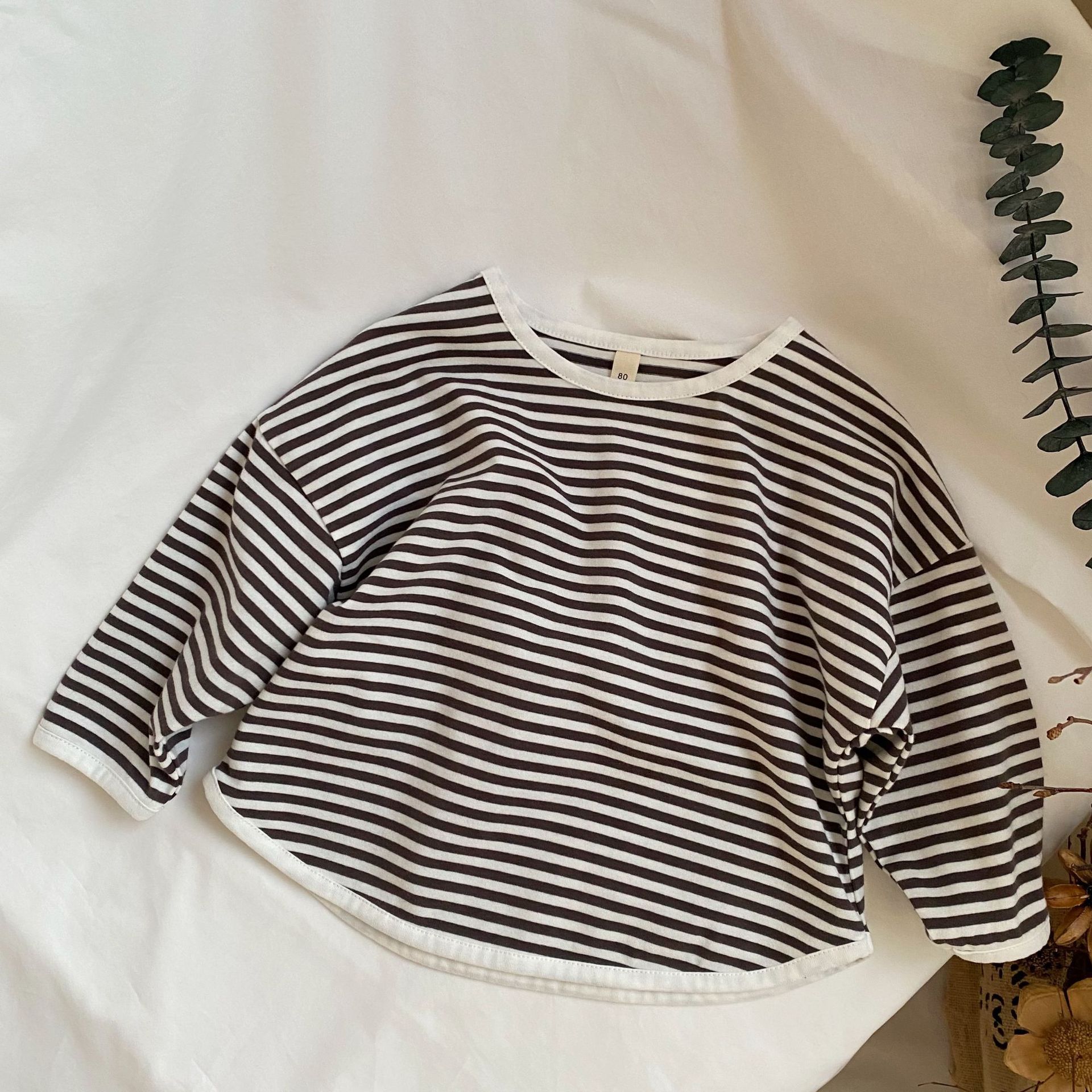 GL-kids 한국판 봄 신상품 아동용 얇은 스트라이프 긴팔 티셔츠 남아 여아 캐주얼하고 편하게 입기 좋은 베이스 레이어 티셔츠