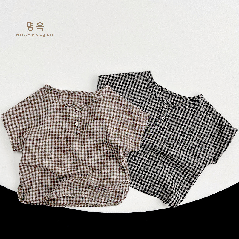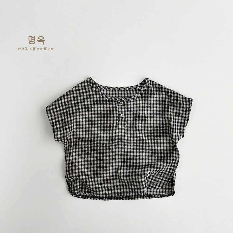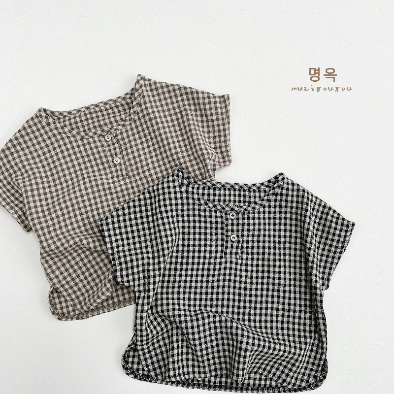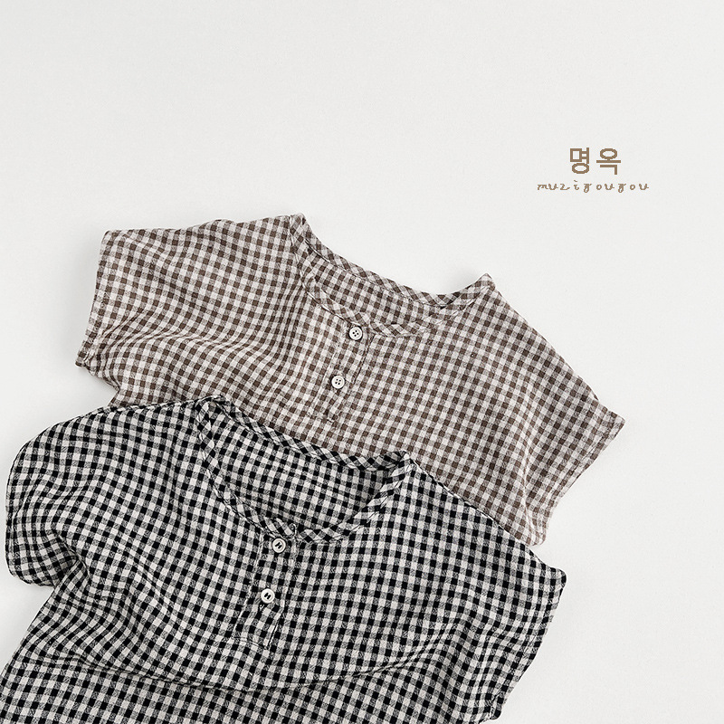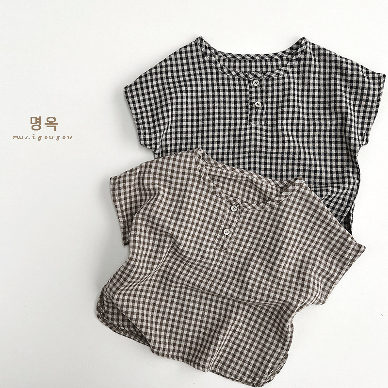 한국 격자 무늬 셔츠 ~ 소년 소녀를 위한 어린이 여름 순면 인형 셔츠 일본 셔츠 아동복 ~ 민규 의류