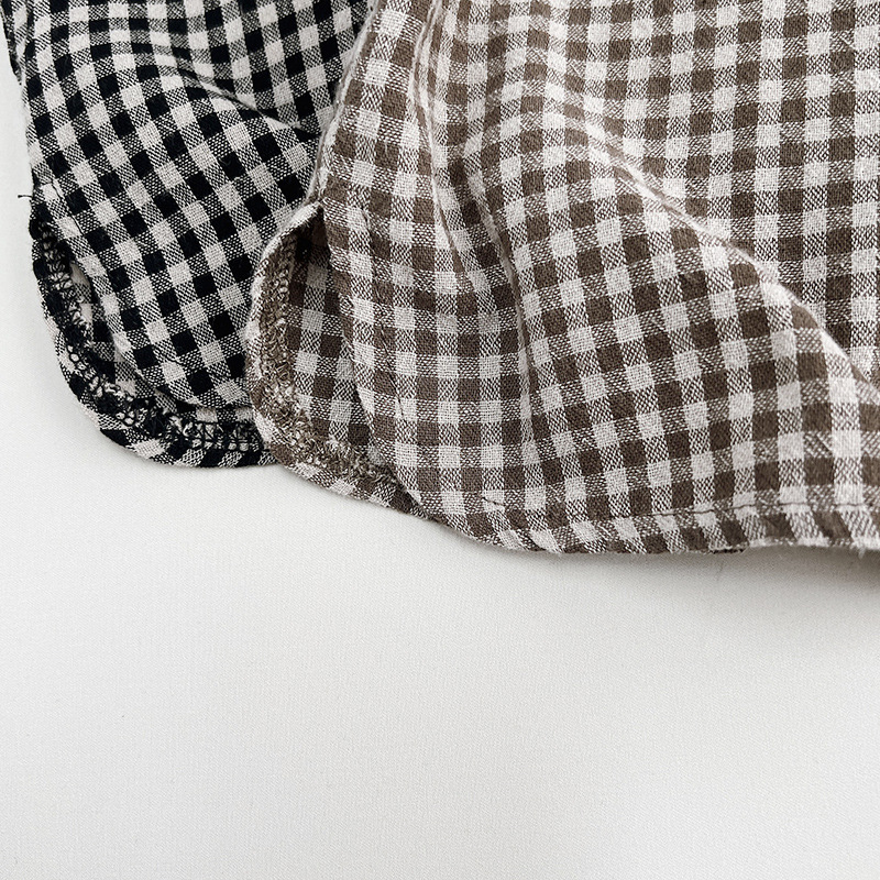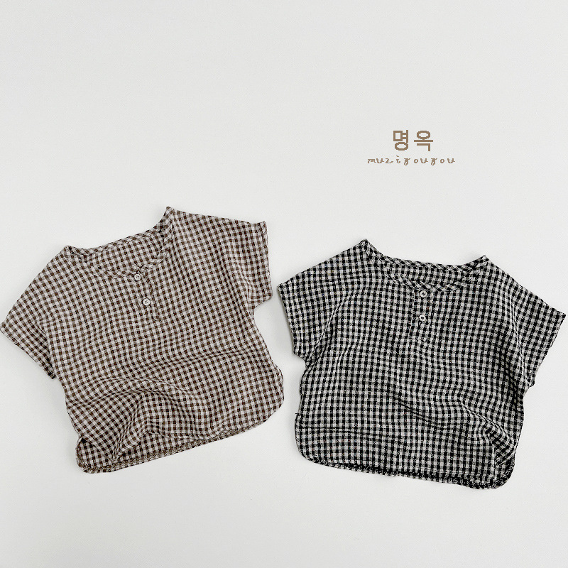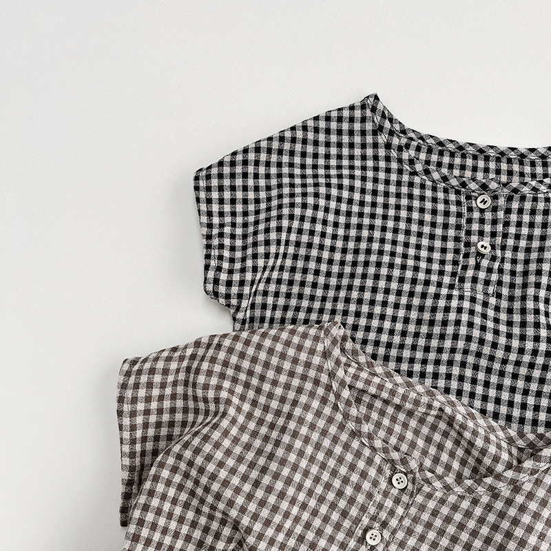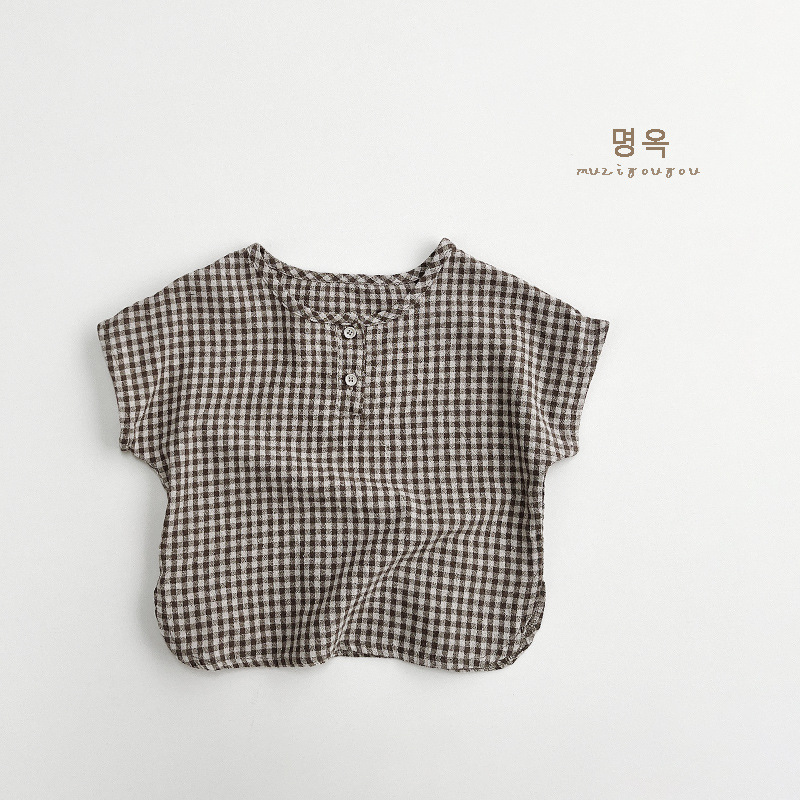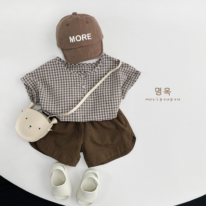 한국 격자 무늬 셔츠 ~ 소년 소녀를 위한 어린이 여름 순면 인형 셔츠 일본 셔츠 아동복 ~ 민규 의류