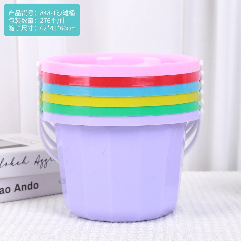 848 해변 양동이 어린이 물 모래 파는 모래 플라스틱 양동이 줄무늬 단일 양동이 18*13cm 마구간 장난감 도매