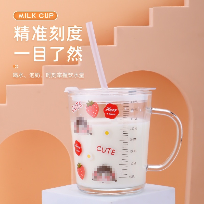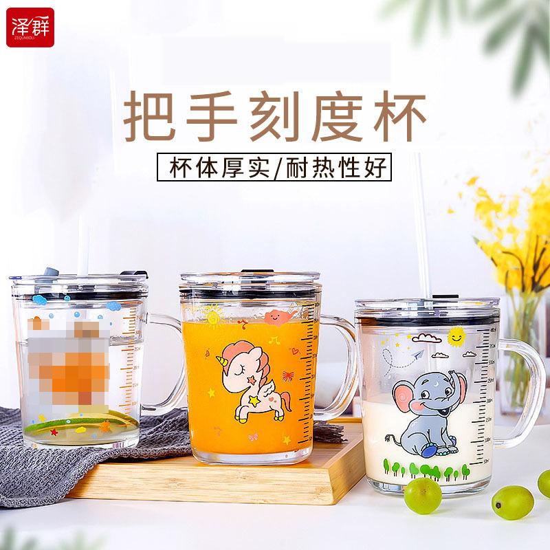 인터넷 연예인 어린이 물 컵 흡입 튜브 컵 우유 컵 두꺼운 핸들 게이지 컵 오트밀 아침 식사 컵 커피 컵 유리스토어 가기