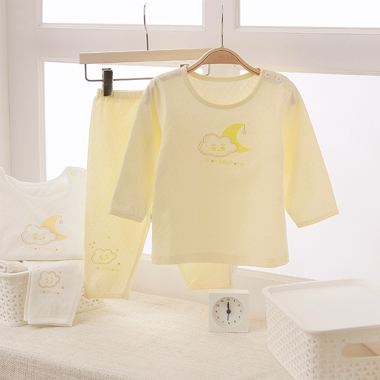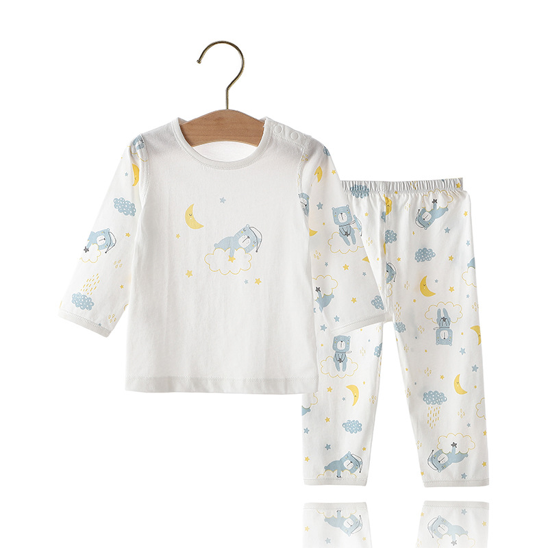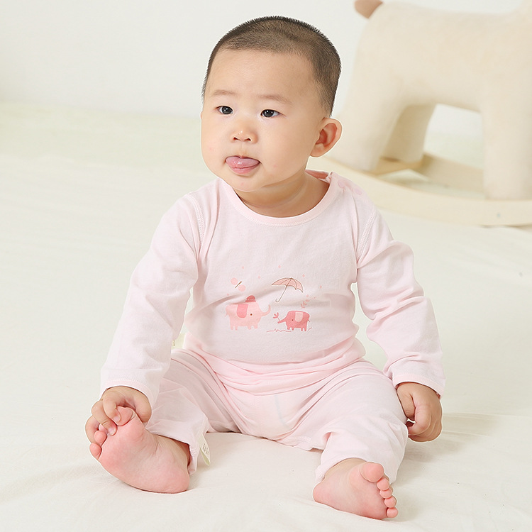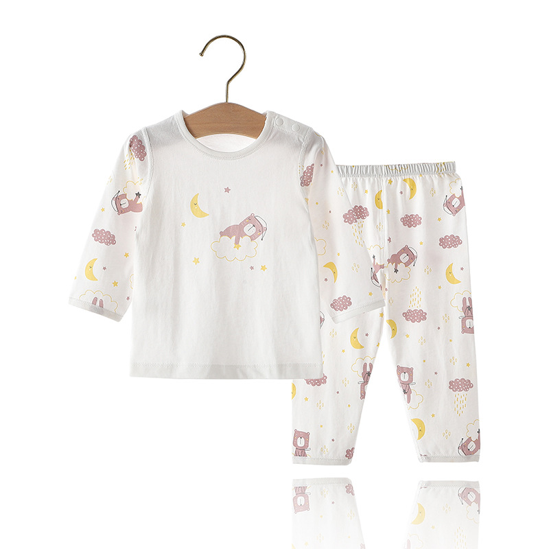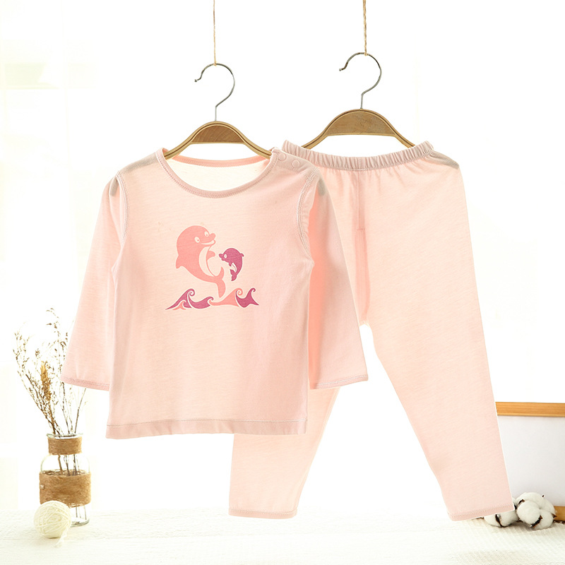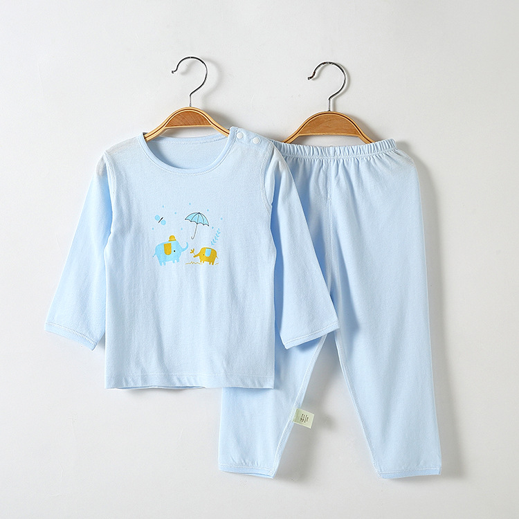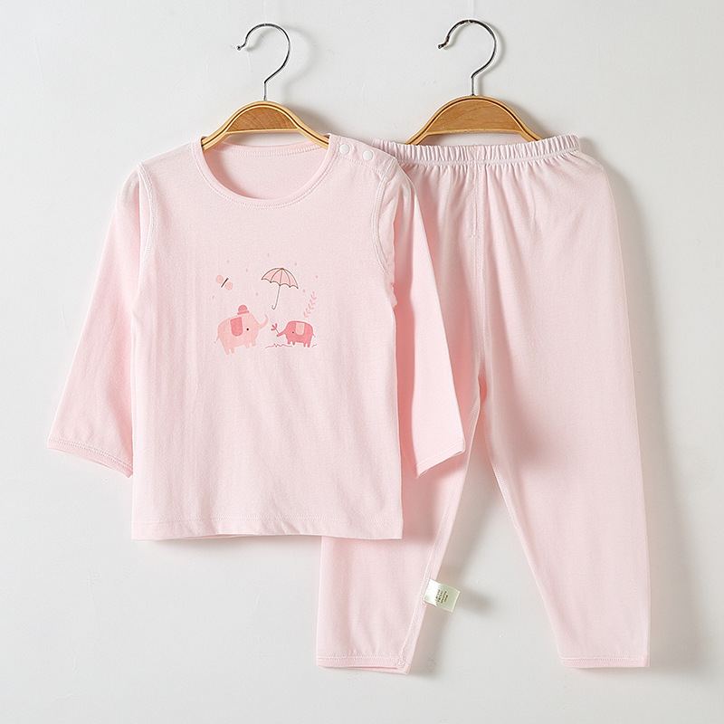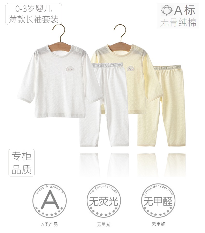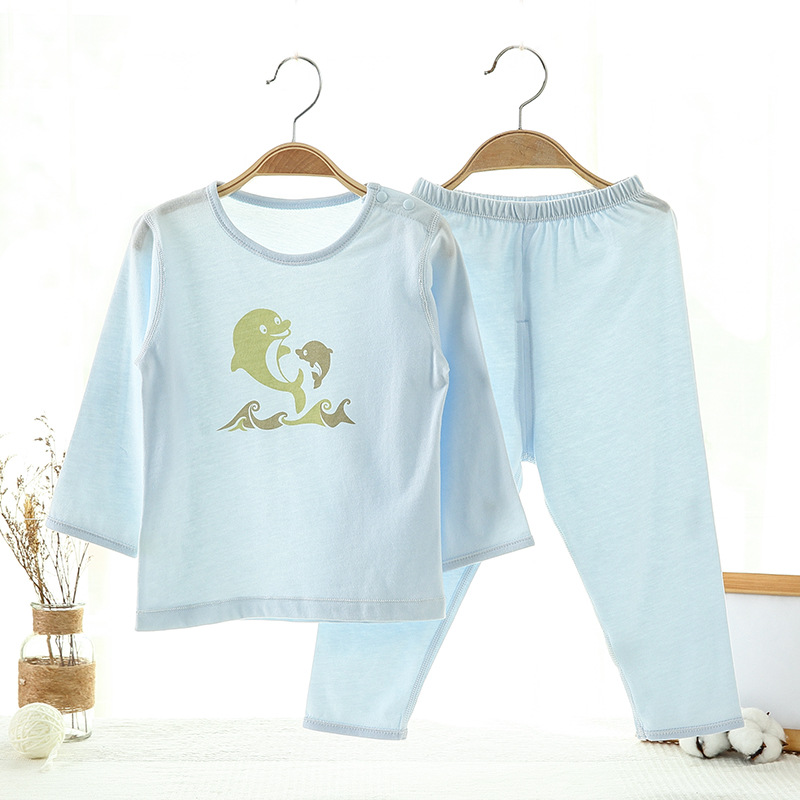 어린이 잠옷 봄 여름 순면 A급 무봉제 얇은 긴팔 여아 홈웨어 남아 에어컨 의류 바지 세트