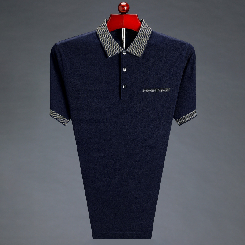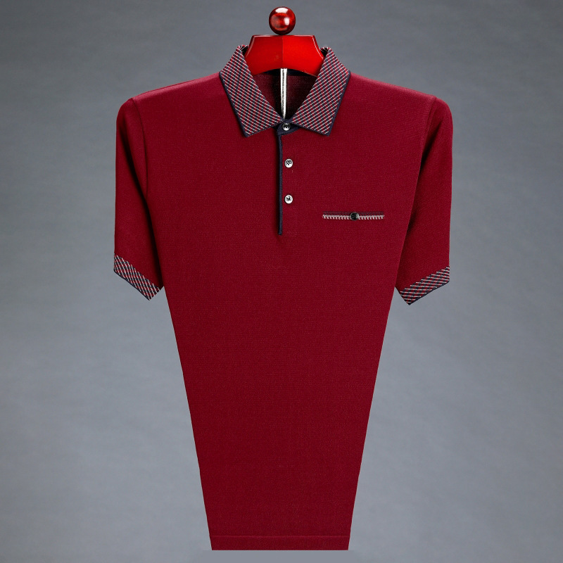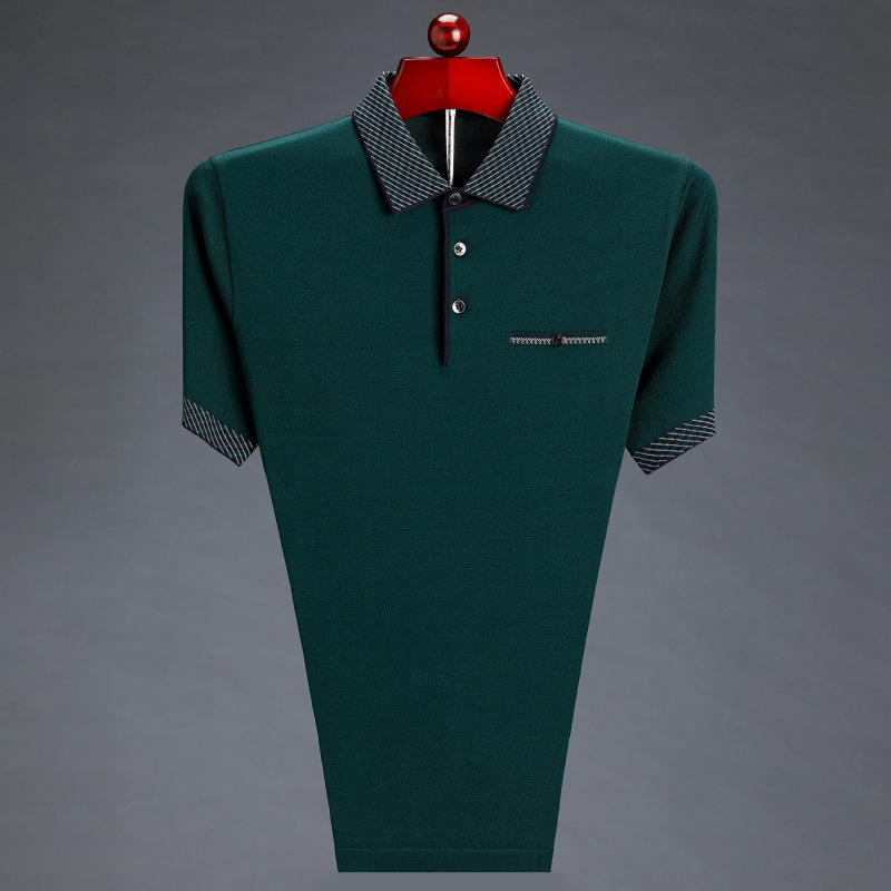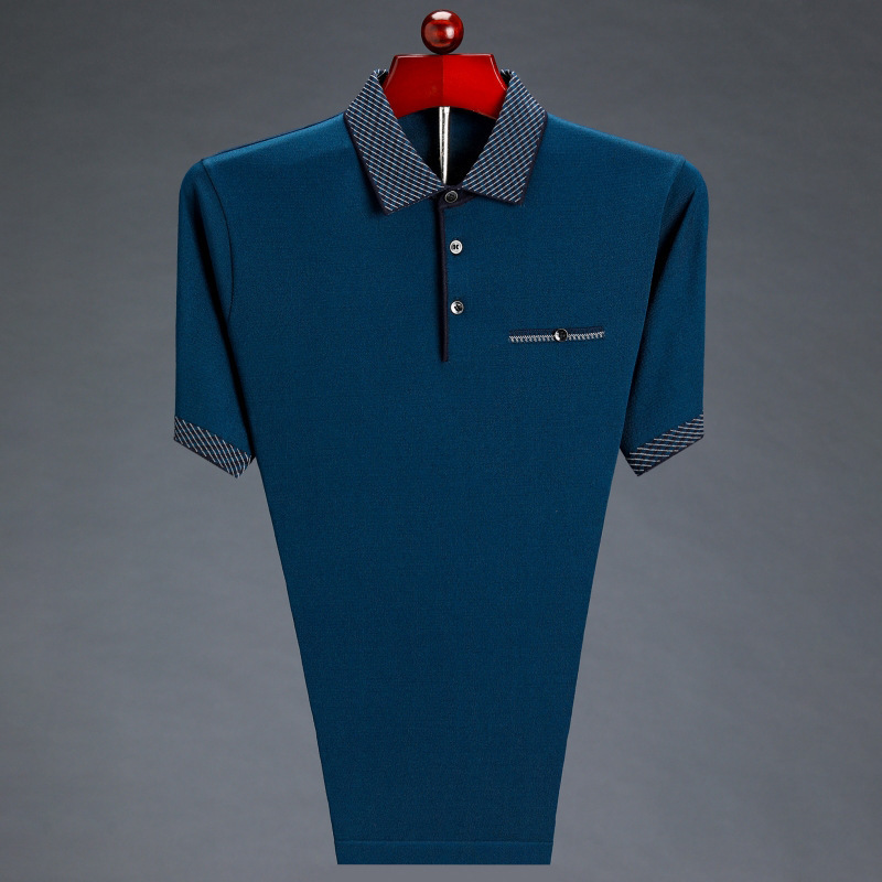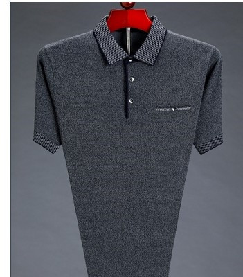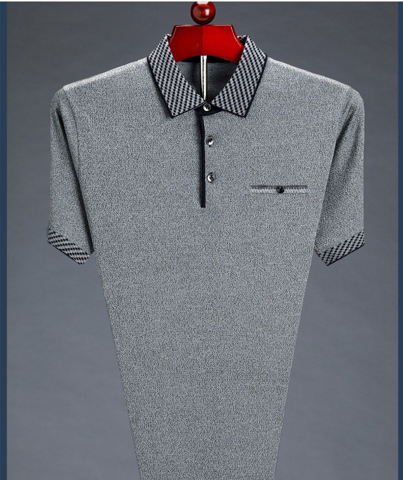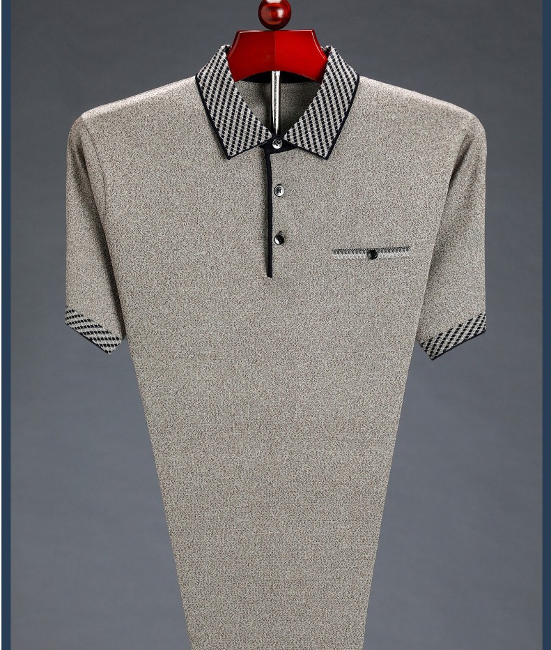 남성용 반팔 티셔츠 아빠의 여름 옷깃 루즈한 탑 중년 및 노인을위한 반팔 얇은 아이스 실크 티셔츠