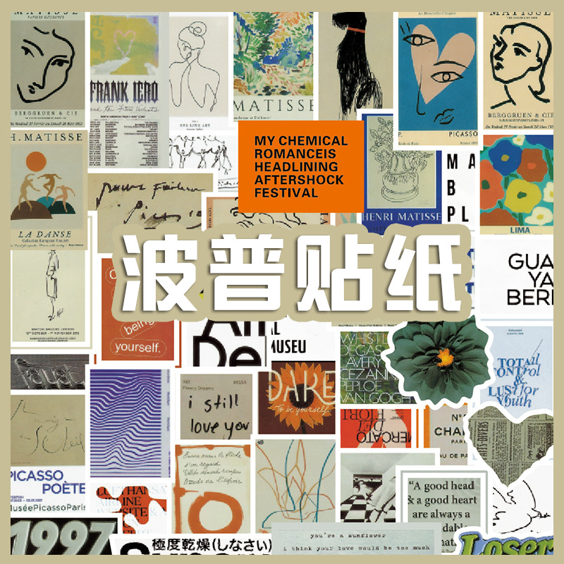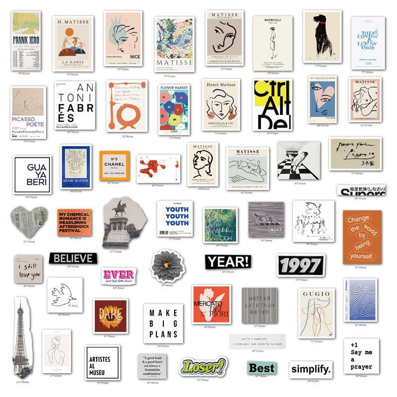 50 팝 스타일 북유럽 아트 스티커 스타일 핸드북 휴대 전화 노트북 DIY 스티커 크로스 보더 아마존스토어 가기