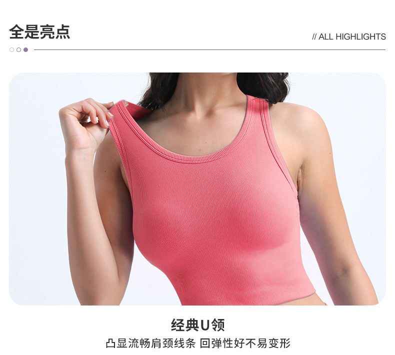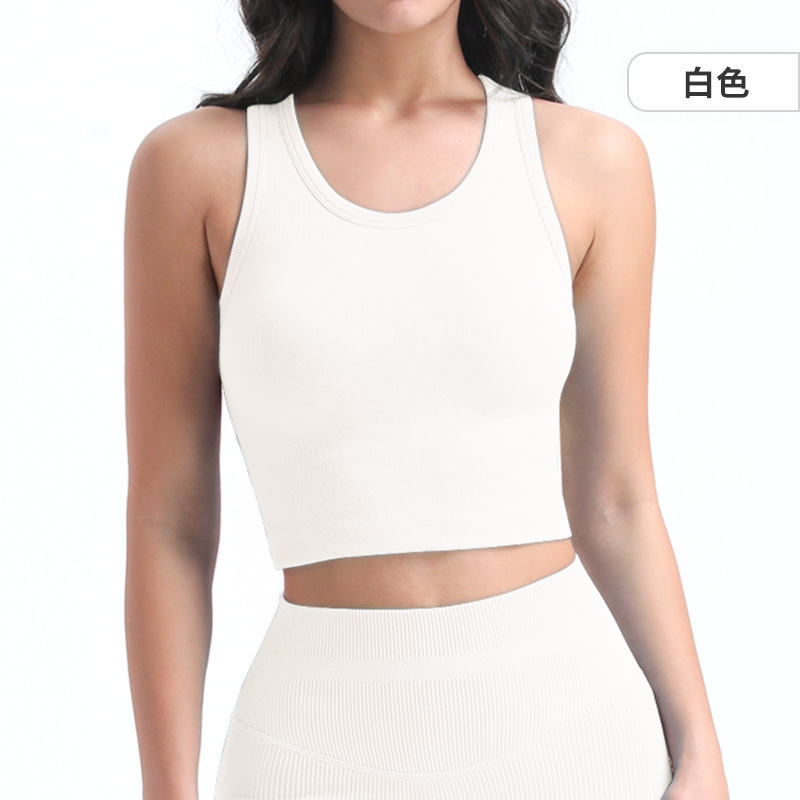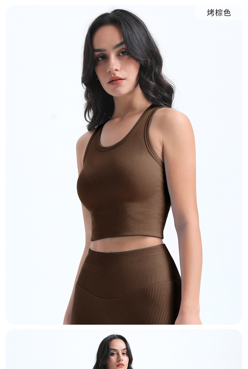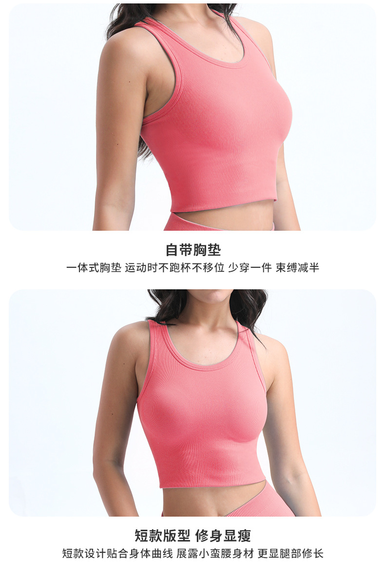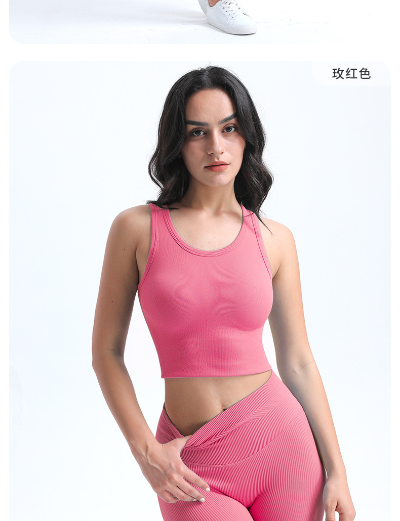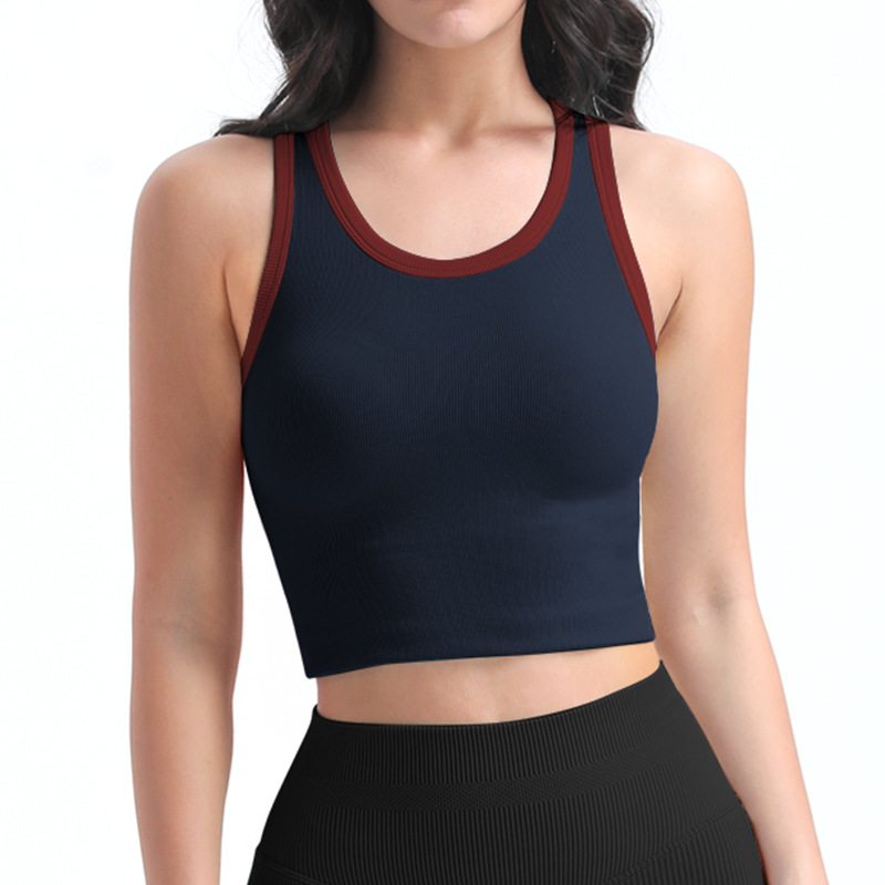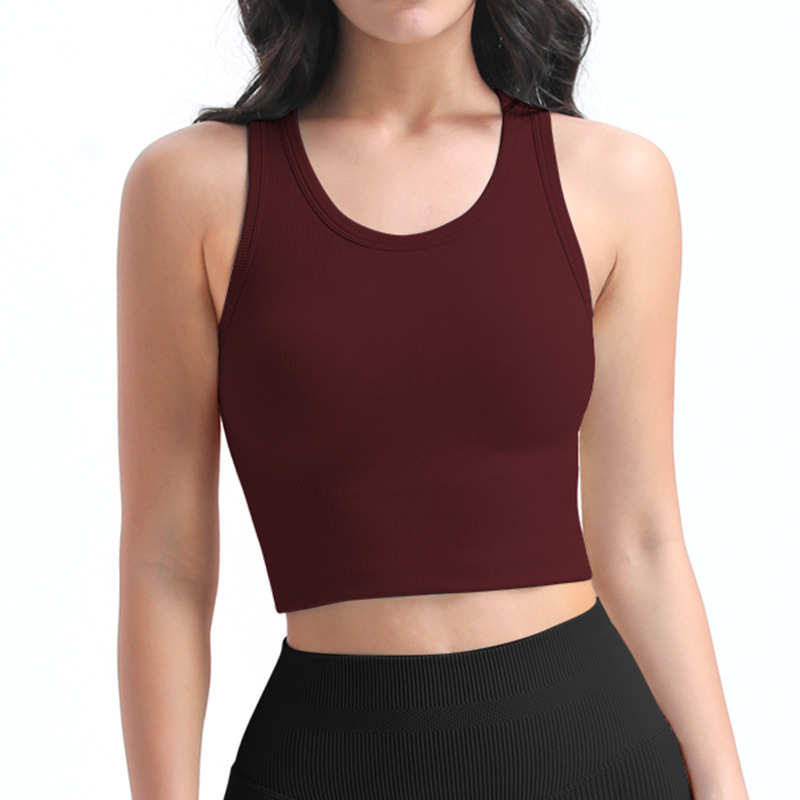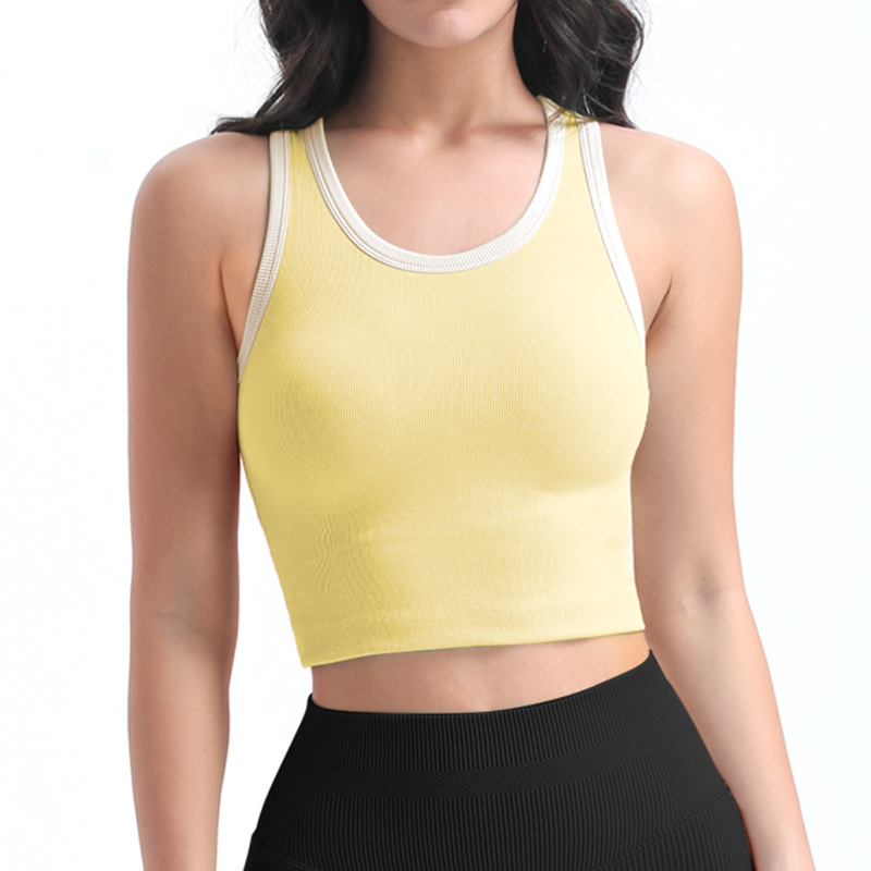 타이트한 스포츠 브라, 라운드넥, 짧은 심리스 원컵 피트니스 웨어 조끼, 가슴 패드가 있는 고정컵, 여성용 요가복스토어 가기