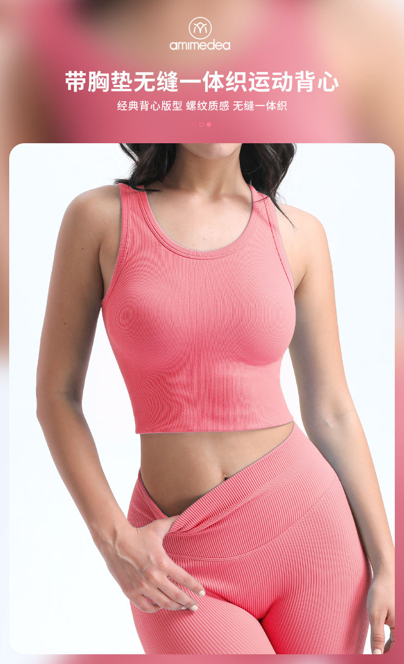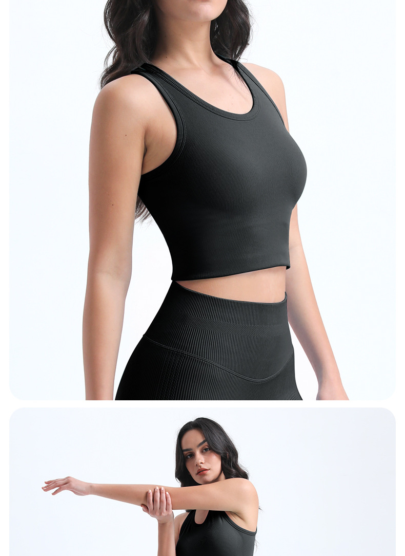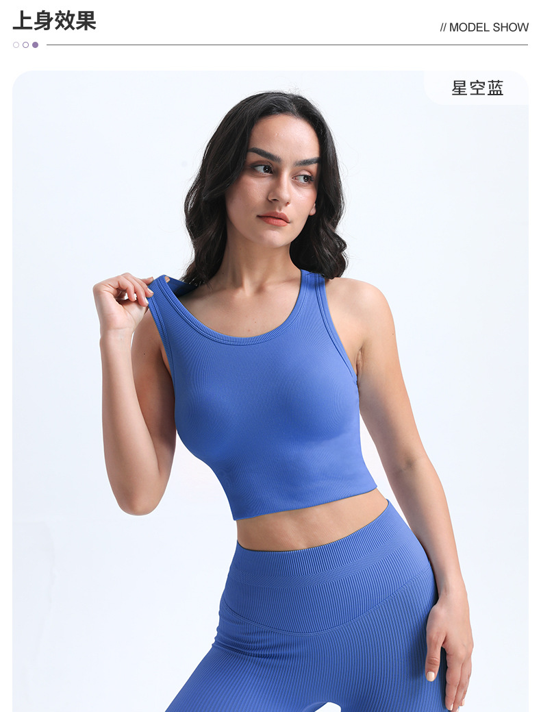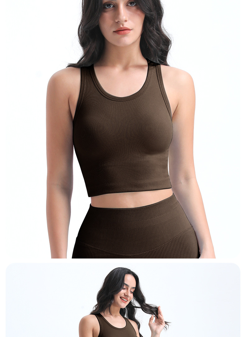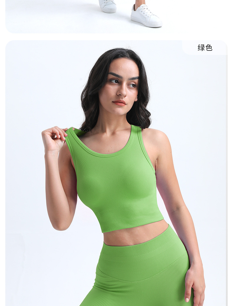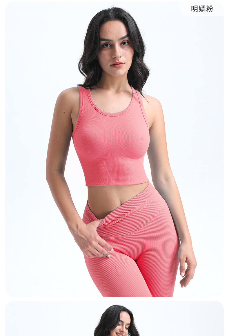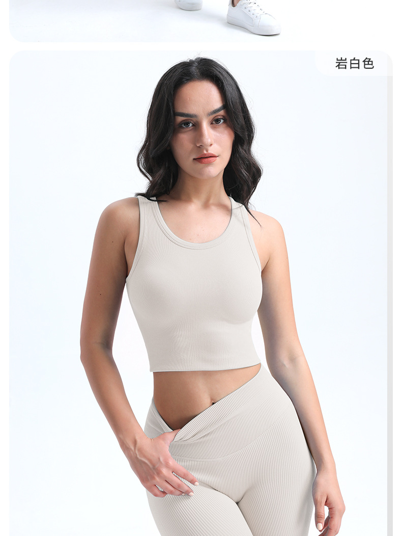 타이트한 스포츠 브라, 라운드넥, 짧은 심리스 원컵 피트니스 웨어 조끼, 가슴 패드가 있는 고정컵, 여성용 요가복스토어 가기