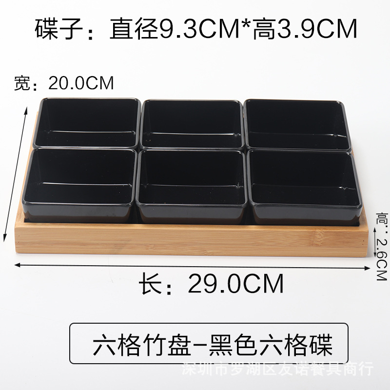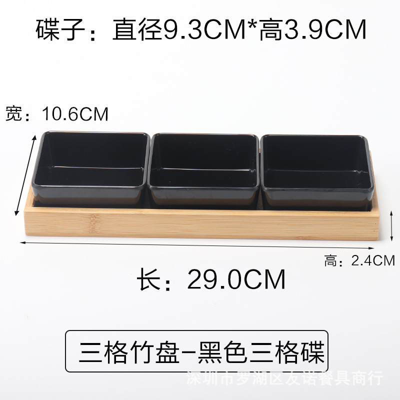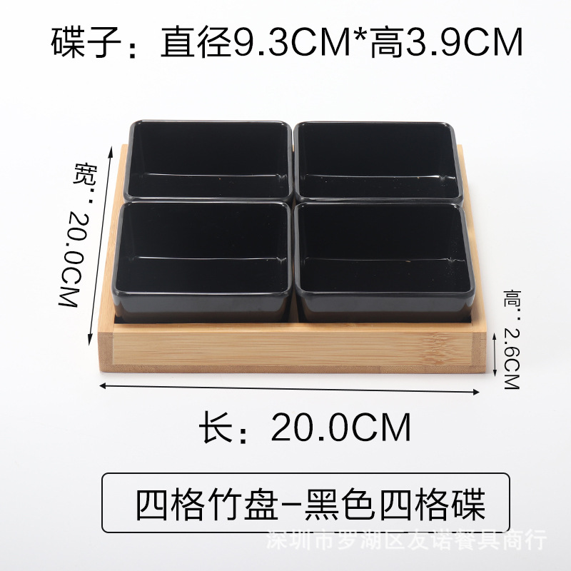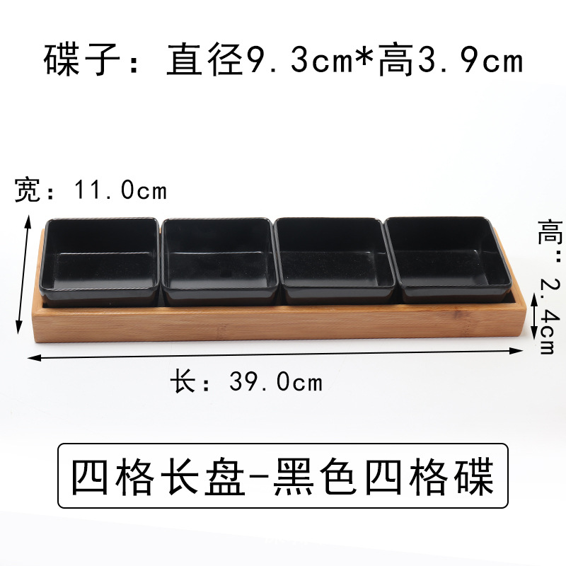 • 대나무 쟁반 + 긴 검은색 접시 4개