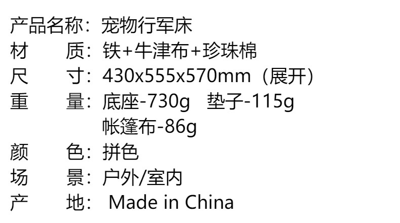 CLS 애완 동물 접이식 침대 캠핑 휴대용 개 캠프 침대 분리형 소형 및 중형 개 방수 캠프 침대