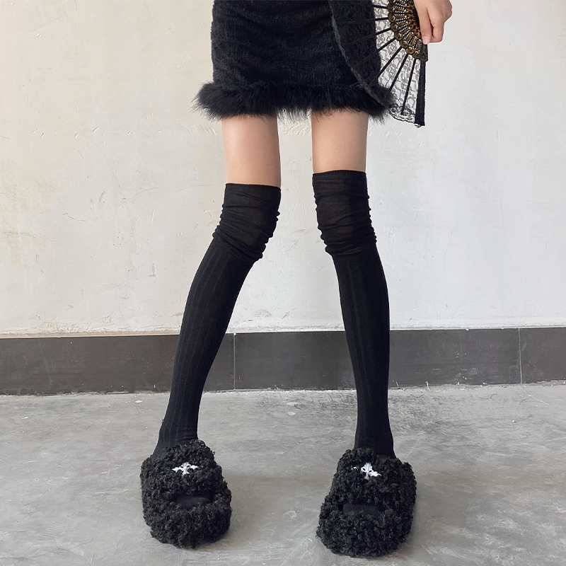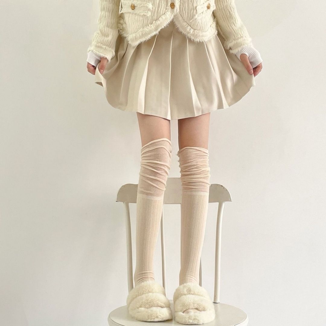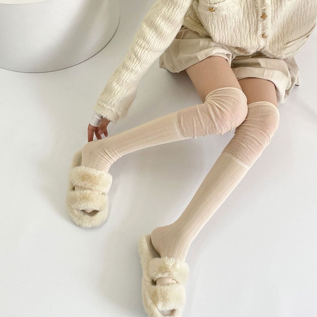 하이삭스, 레이스 스티치, 솔리드 컬러, 세로 줄무늬 롱삭스, 슬림하고 다재다능한 외출용 무릎 위 양말, 레이스 장식스토어 가기