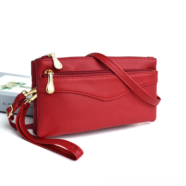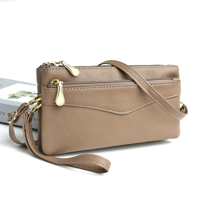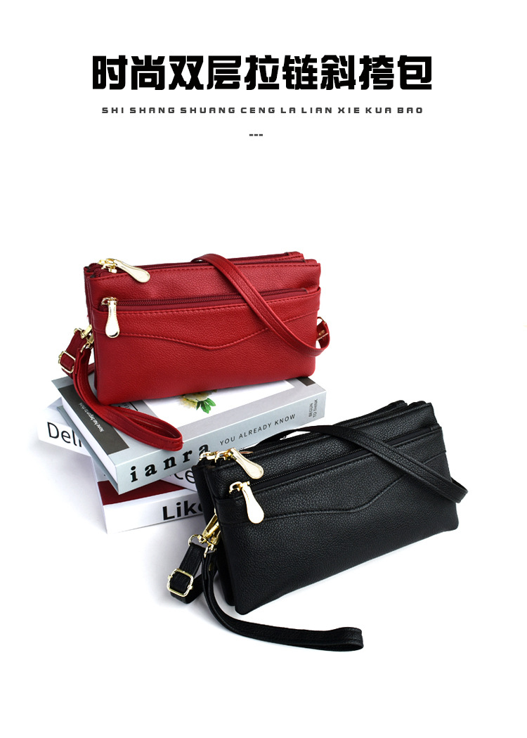 스톨 심플 솔리드 컬러 여성용 크로스 바디 백 더블 지퍼 새로운 핸드백 중년 및 노인 어머니 휴대 전화 가방 소프트