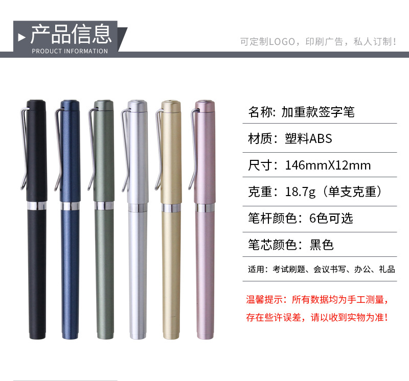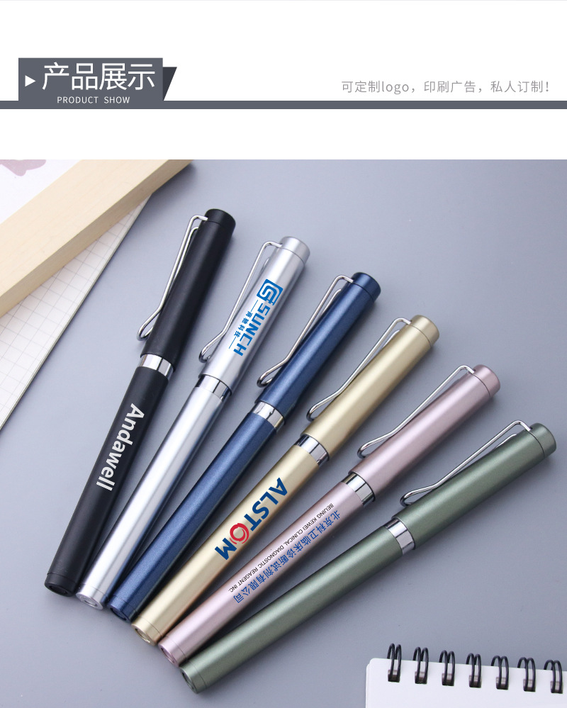 광고용 펜 검정색 젤 펜 로고 인쇄 가능 고급 수성 서명 펜 사무용 펜 대용량 펜심 무게감 있는 펜
