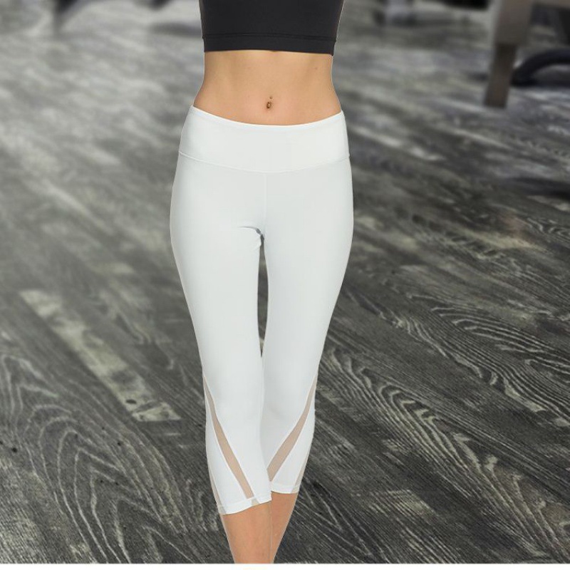 名称:欧美跑步休闲瑜伽裤网纱拼接运动紧身透气健身运动yoga