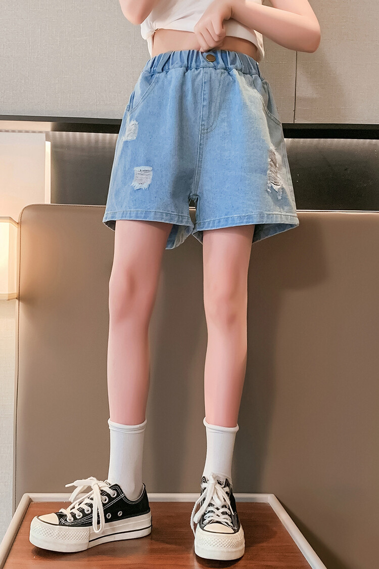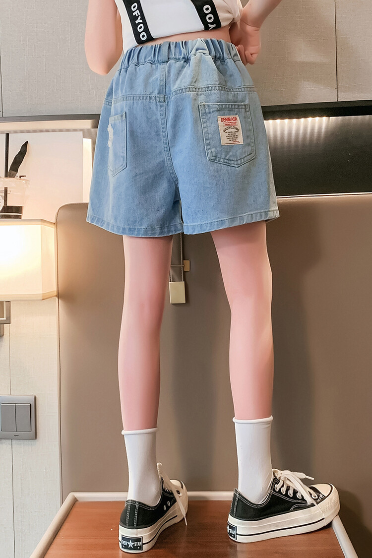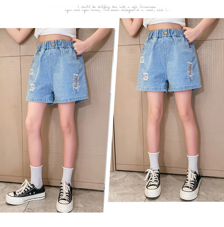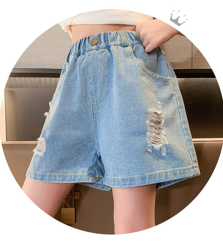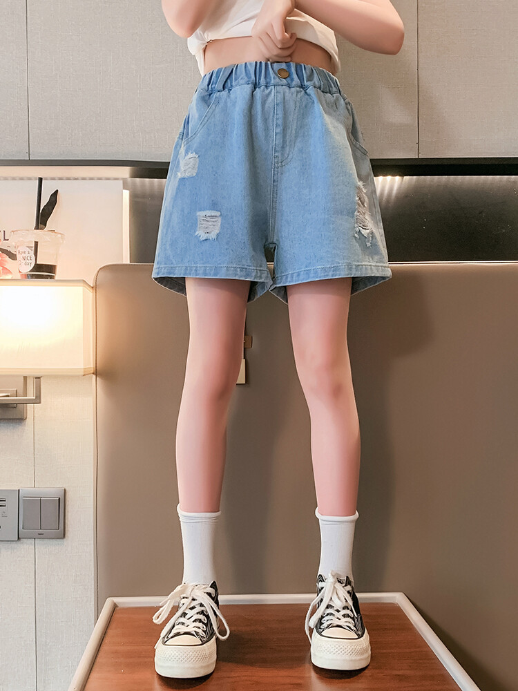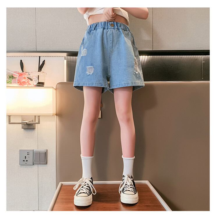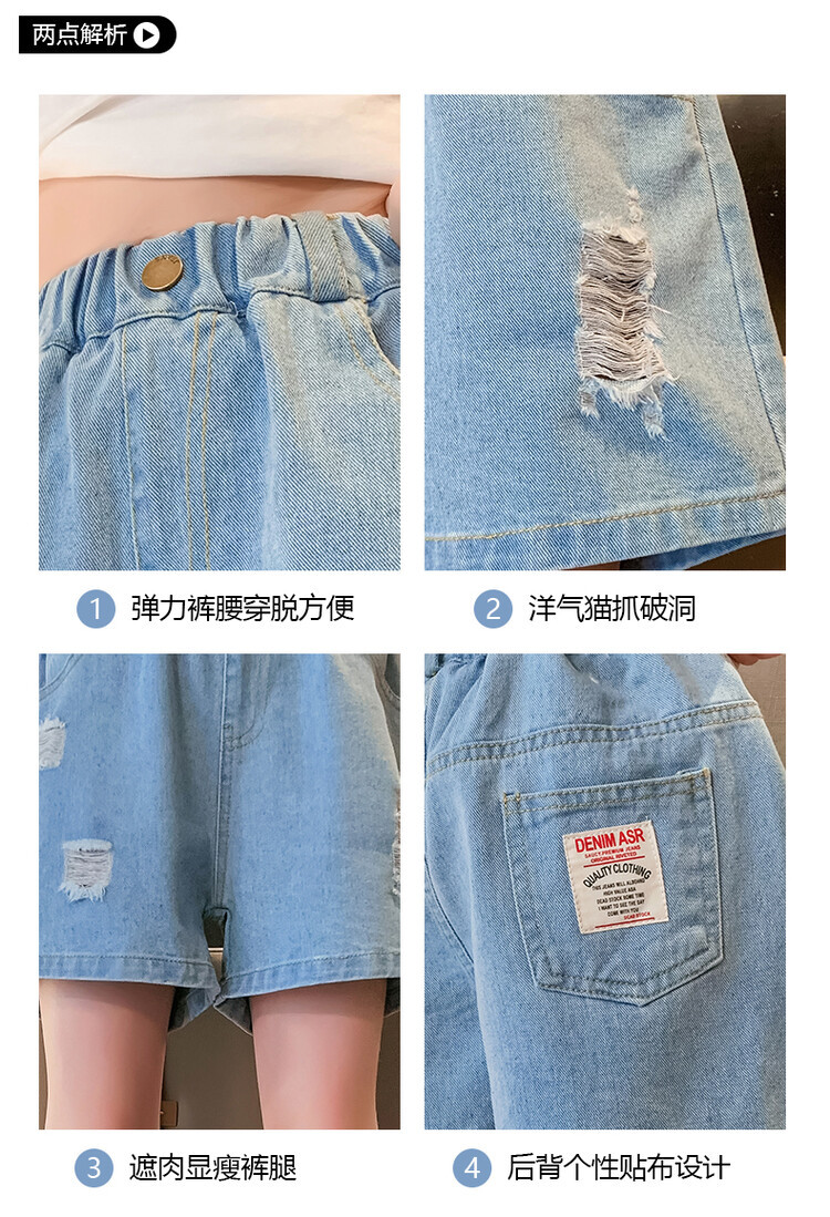 여아 반바지 사이버 인기 찢어진 데님 반바지 겉옷 여름 바지 여름 여아 느슨한 큰 어린이 서양 스타일스토어 가기