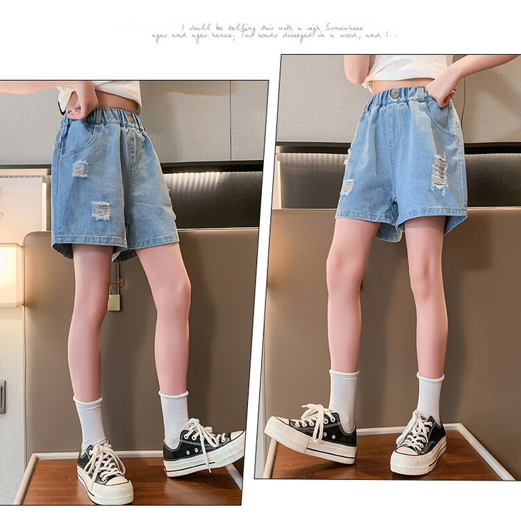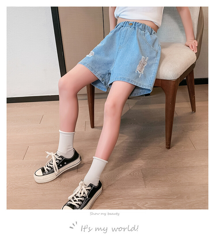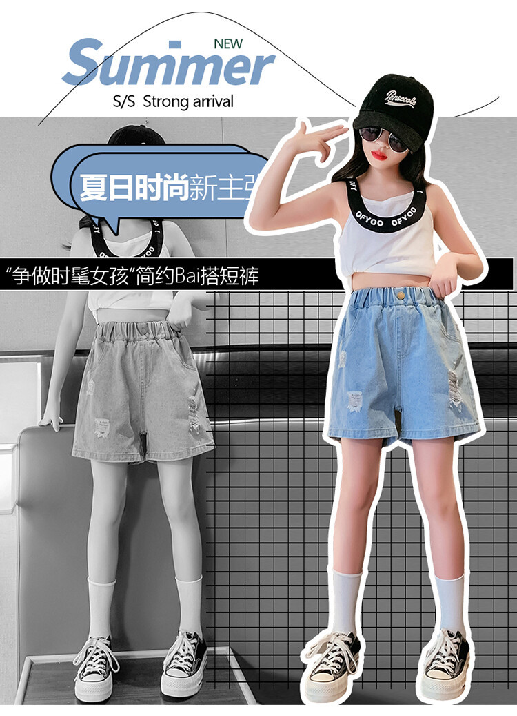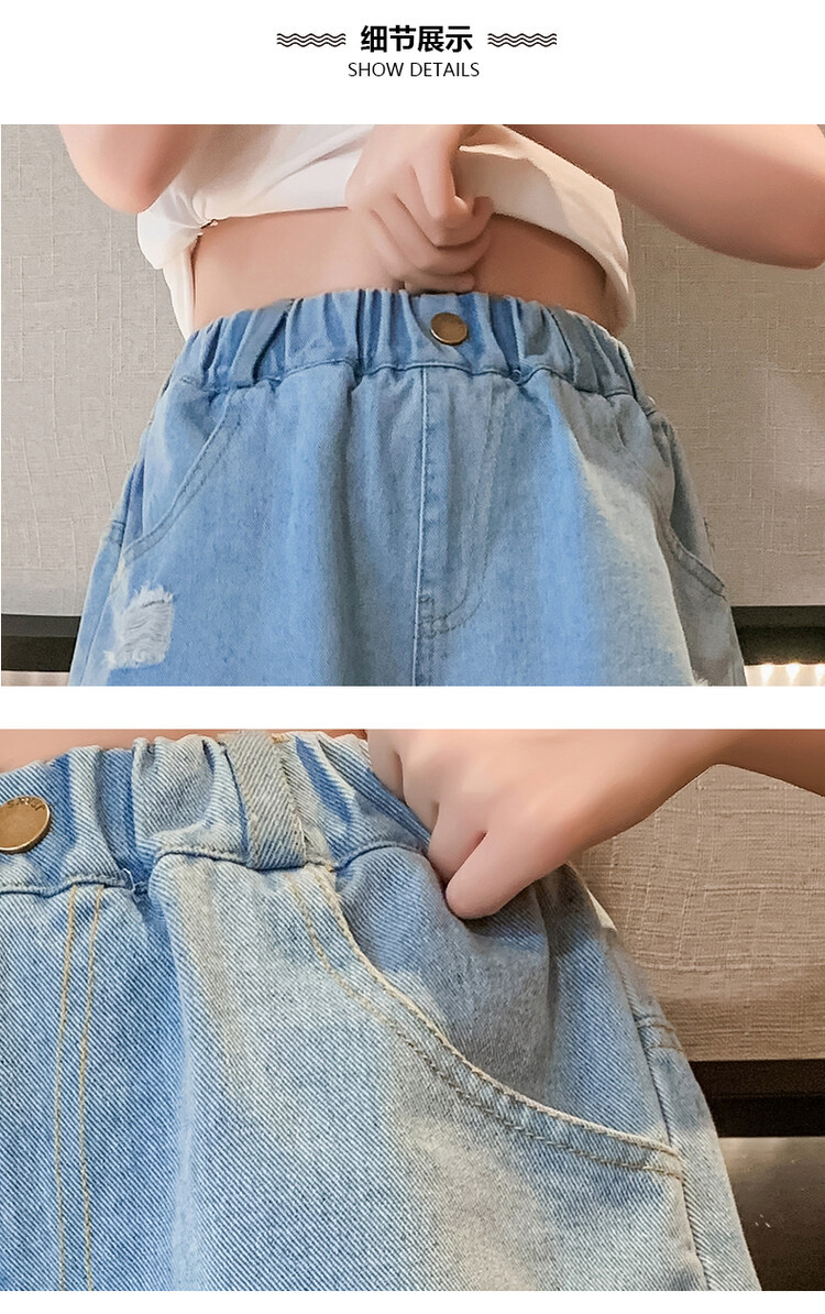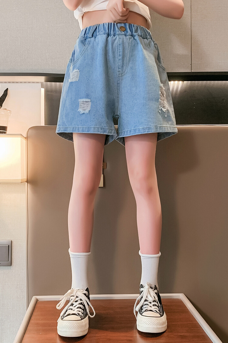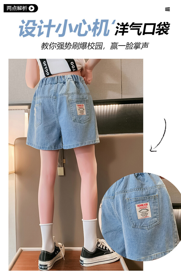 여아 반바지 사이버 인기 찢어진 데님 반바지 겉옷 여름 바지 여름 여아 느슨한 큰 어린이 서양 스타일스토어 가기