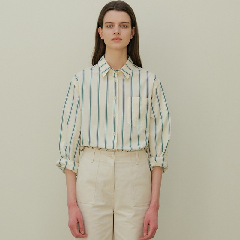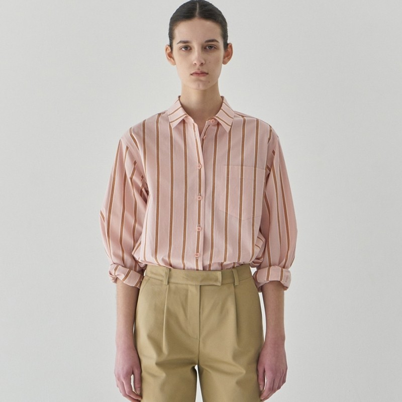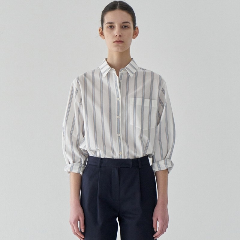LER*BE 세로 스트라이프 셔츠 여성용 2025 봄 가을 신상 다용도 독특한 디자인 루즈핏 긴팔 셔츠스토어 가기