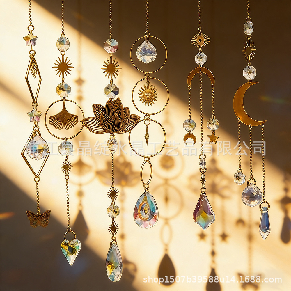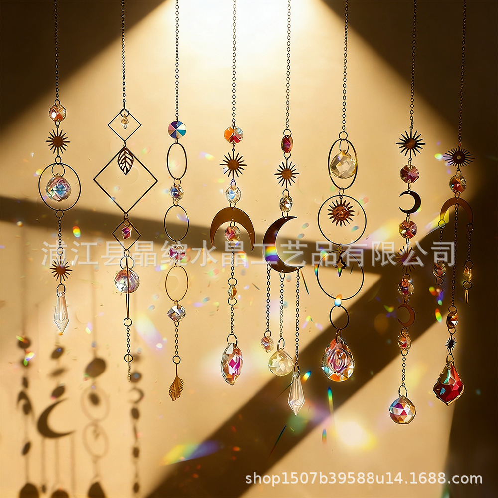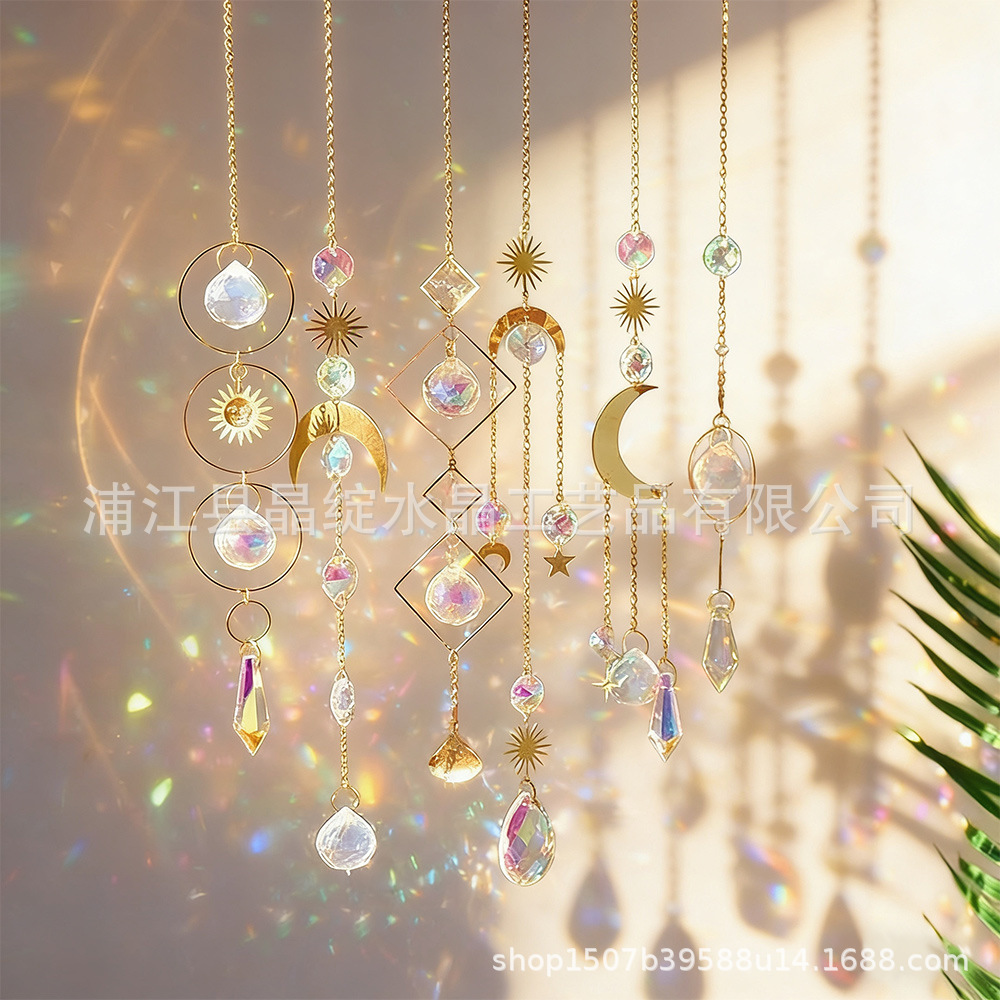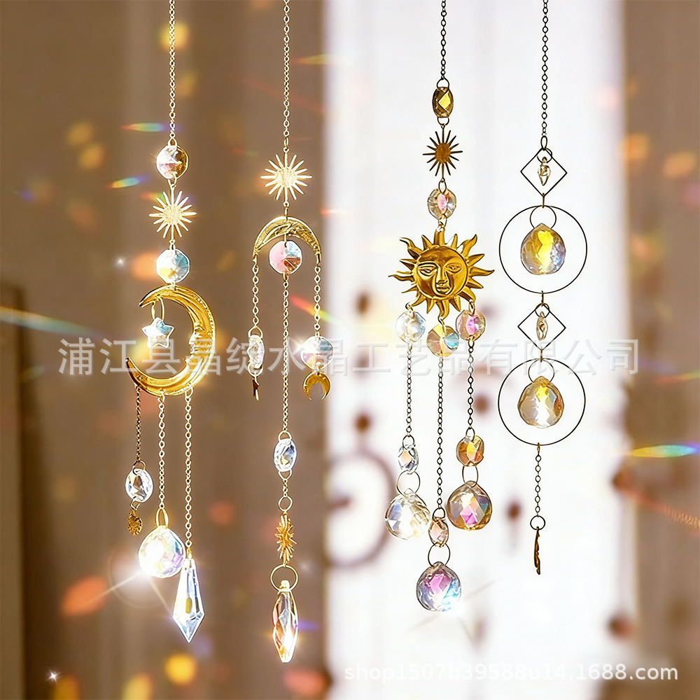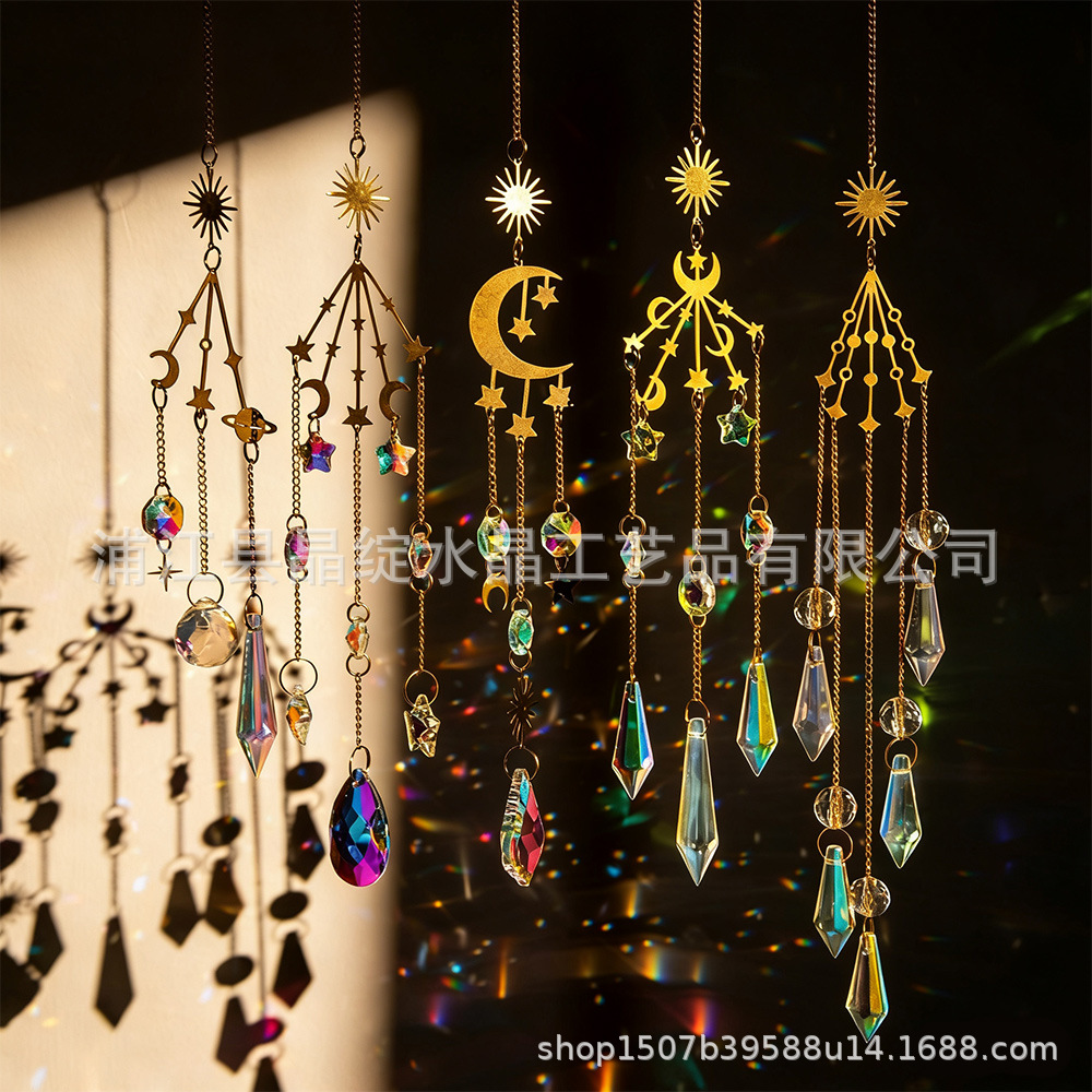 국경 간 직접 공급 골든 실버 시리즈 달 별 빛 수집 보석 정원 장식 크리스탈 펜던트 태양 포수스토어 가기