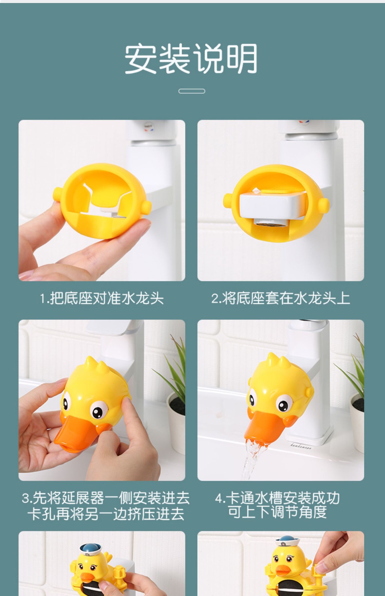 폭발성 어린이 아기 귀여운 오리 수도꼭지 연장기 손 씻기 방수 만화 가이드 싱크대 연장 장난감스토어 가기