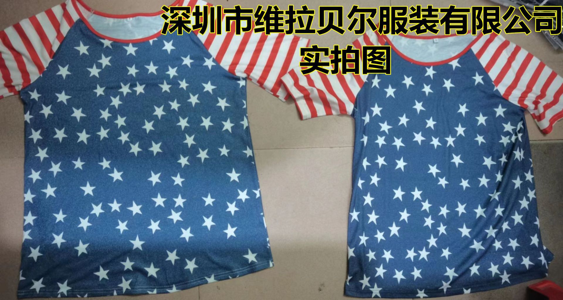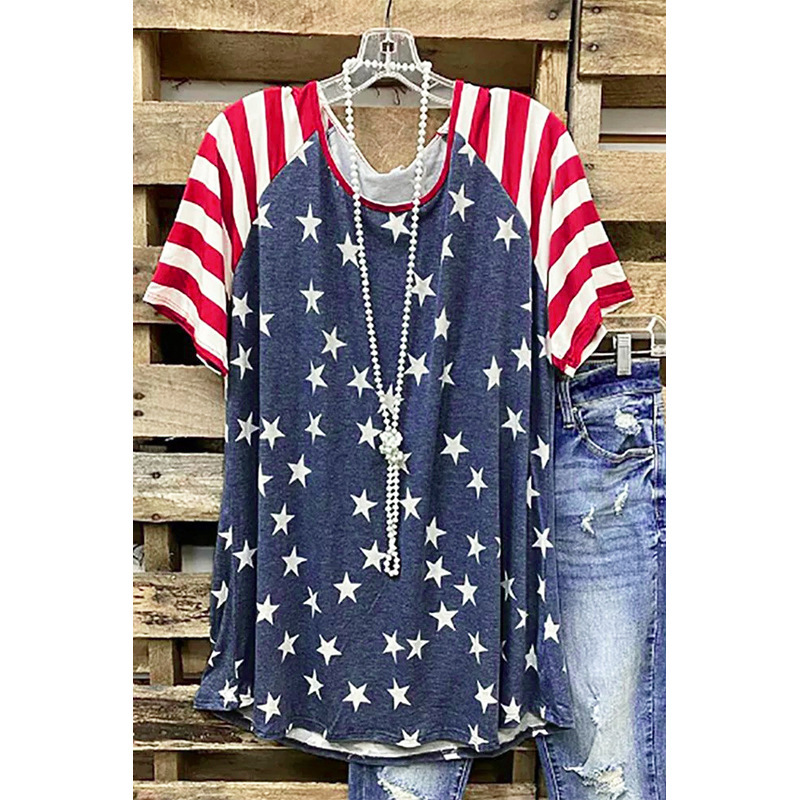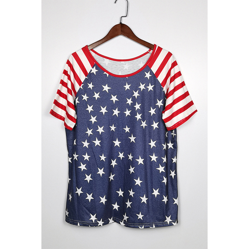 많은 수의 재고 크로스 국경 유럽과 미국 아마존 여름 여성의 독립 일 스트라이프 스티치 별 반팔 티셔츠 여성