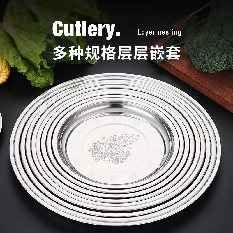 스테인레스 스틸 포도 플레이트 라운드 트레이 컷-리본 트레이 디스크 스테인레스 스틸 과일 플레이트 냄비 그릴 섀시스토어 가기