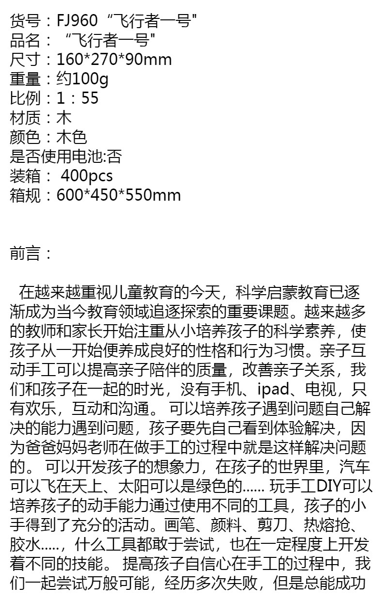 플라이어 1 호 항공 모델 라이트 브라더스 항공기 모델 공예 퍼즐 시뮬레이션 레트로 펑루 1 호