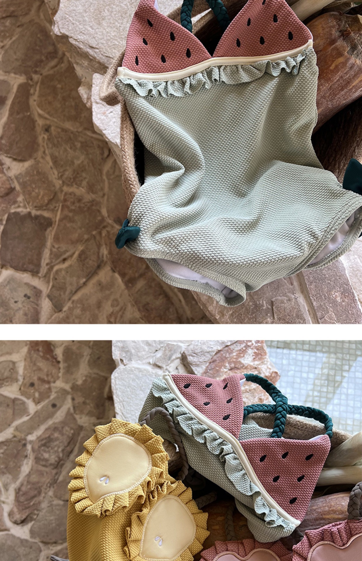 ins new 26 summer do 베이비 귀여운 과일 스트랩 원피스 수영복 여아용 레이스 속건성 휴가용 수영복