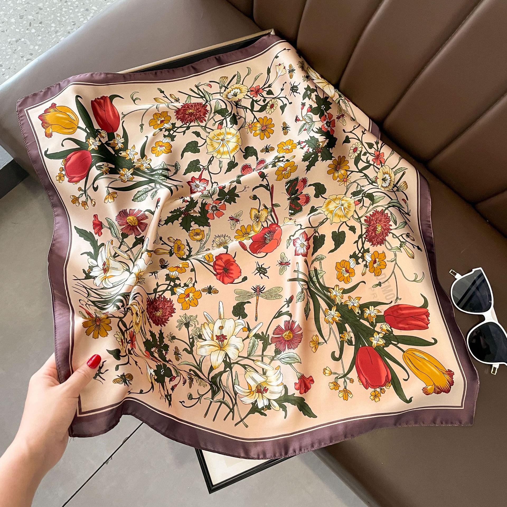 새로운 작은 사각 스카프 70cm 한국 새틴 스퀘어 스카프 실크 여성 장식 작은 숄 스카프 많은 도매