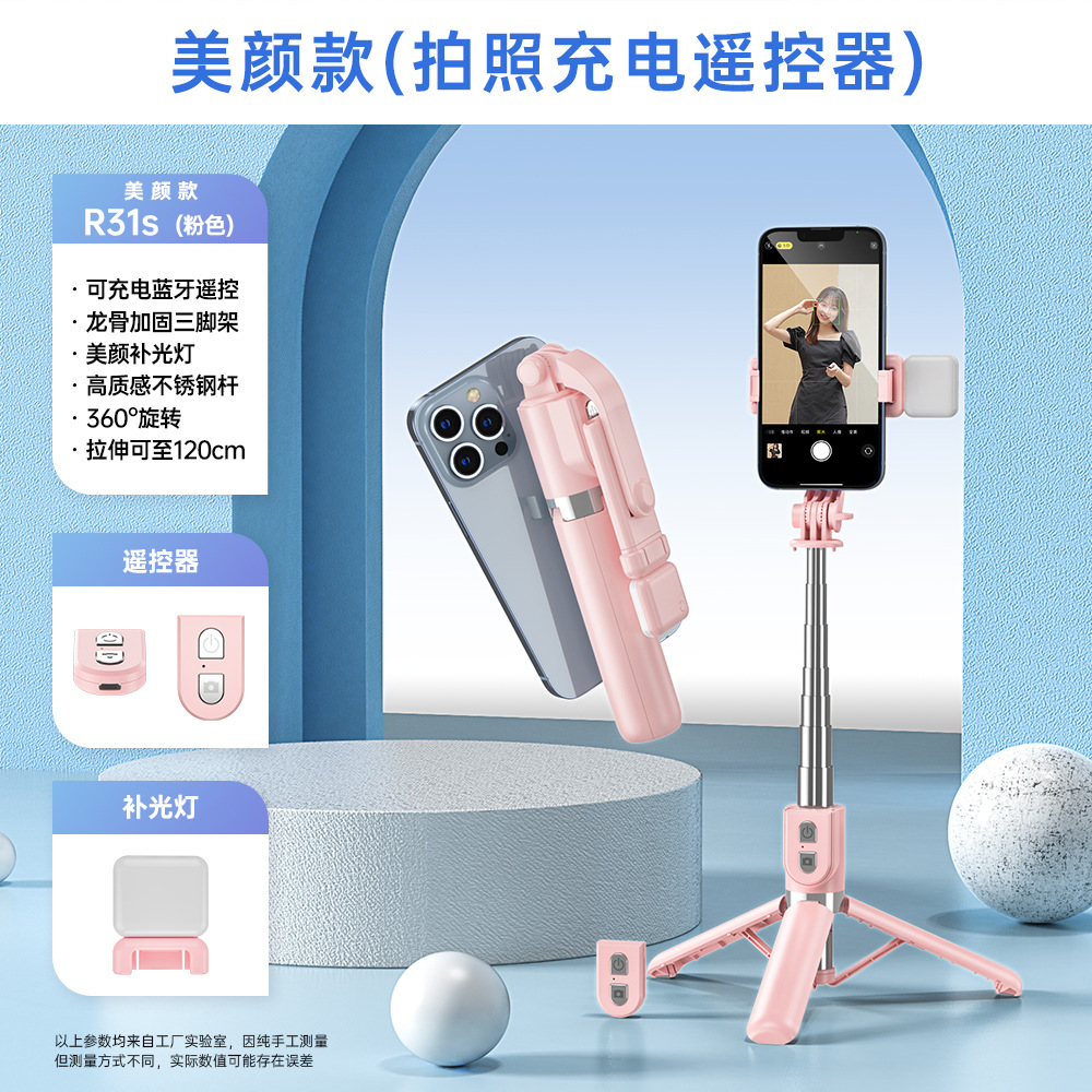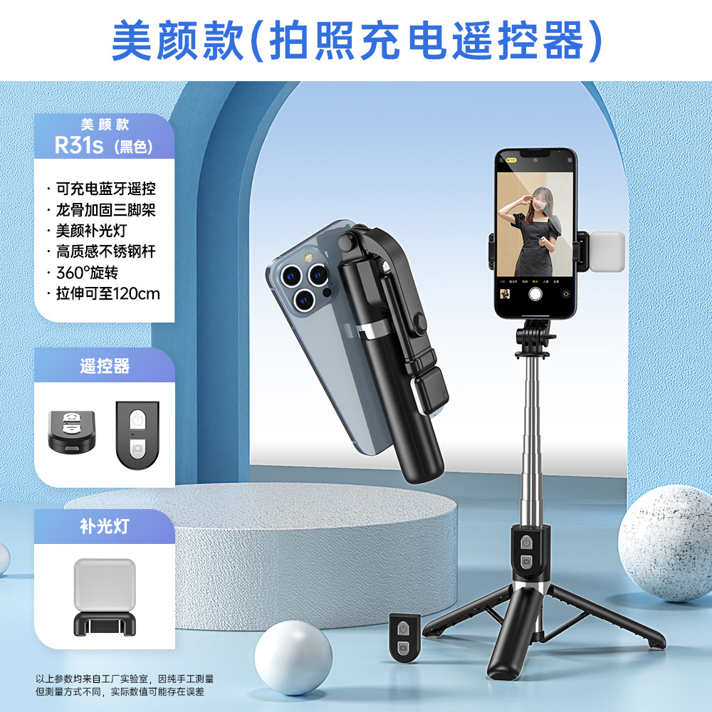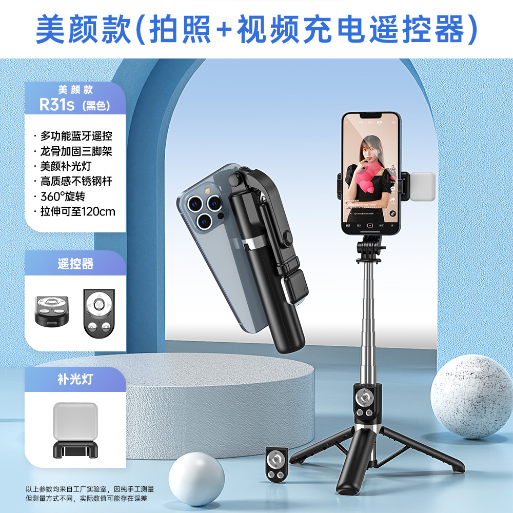 휴대 전화 셀카 스틱 충전 블루투스 원격 제어 채우기 조명 데스크탑 바닥 강화 삼각대 통합 라이브 방송 브래킷