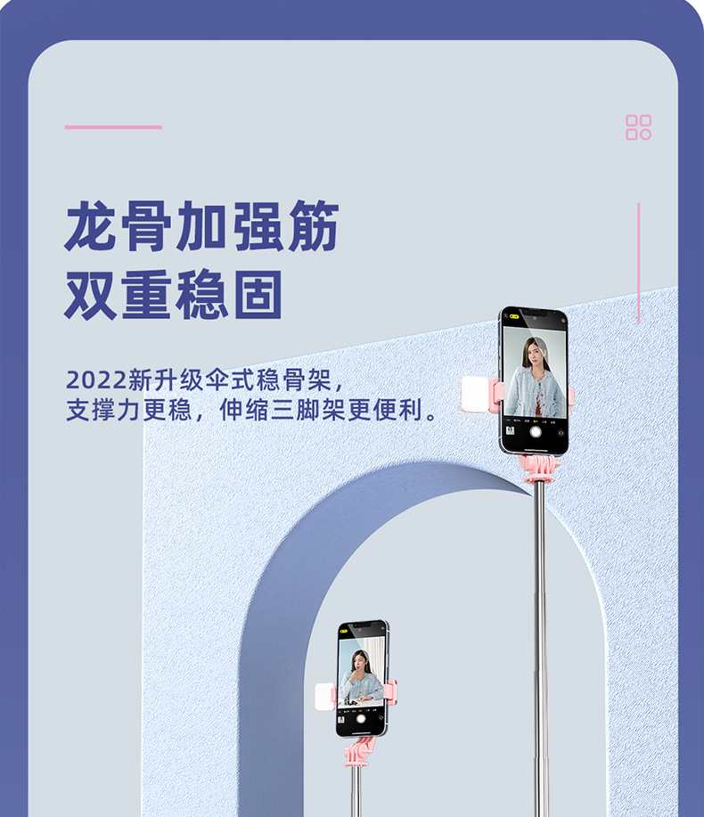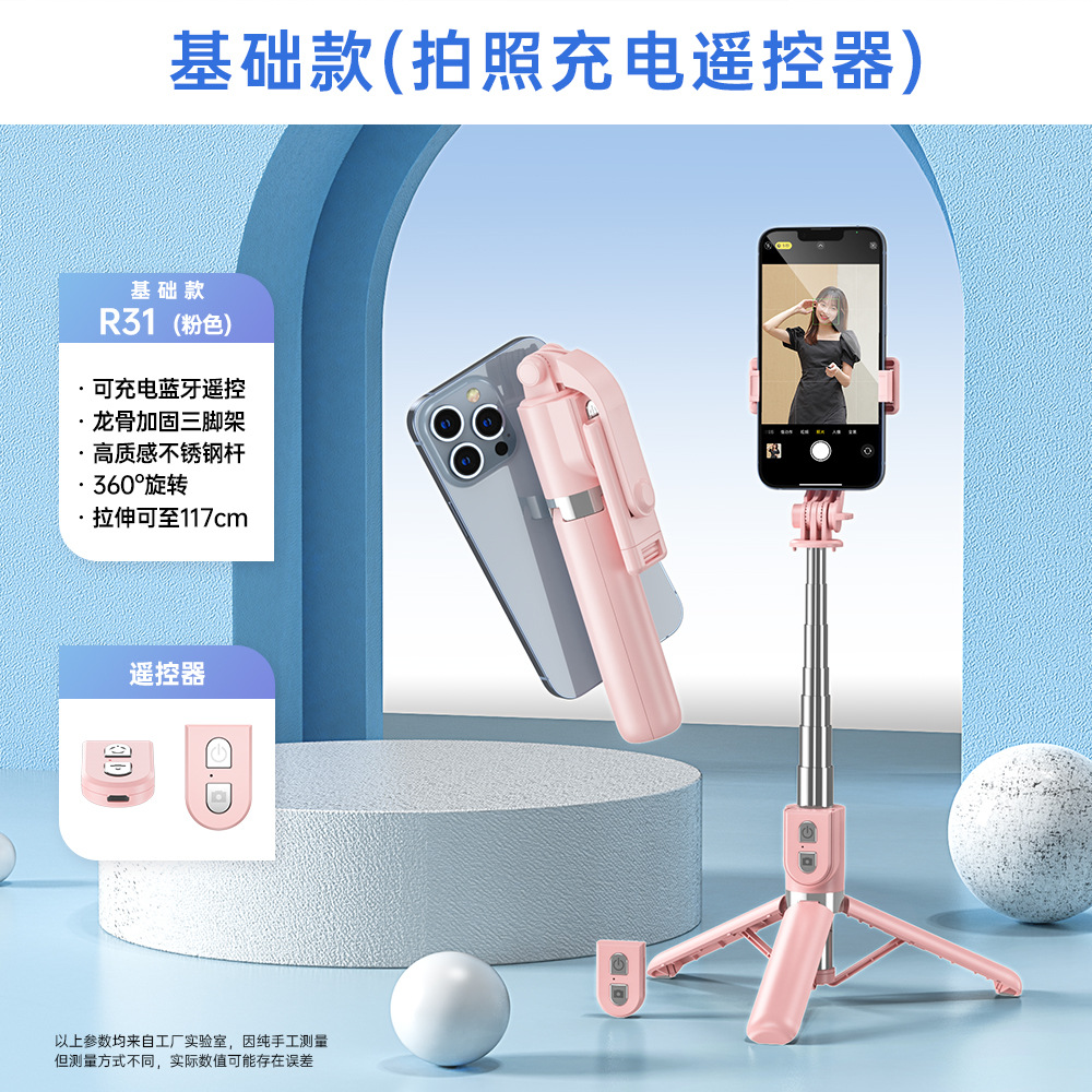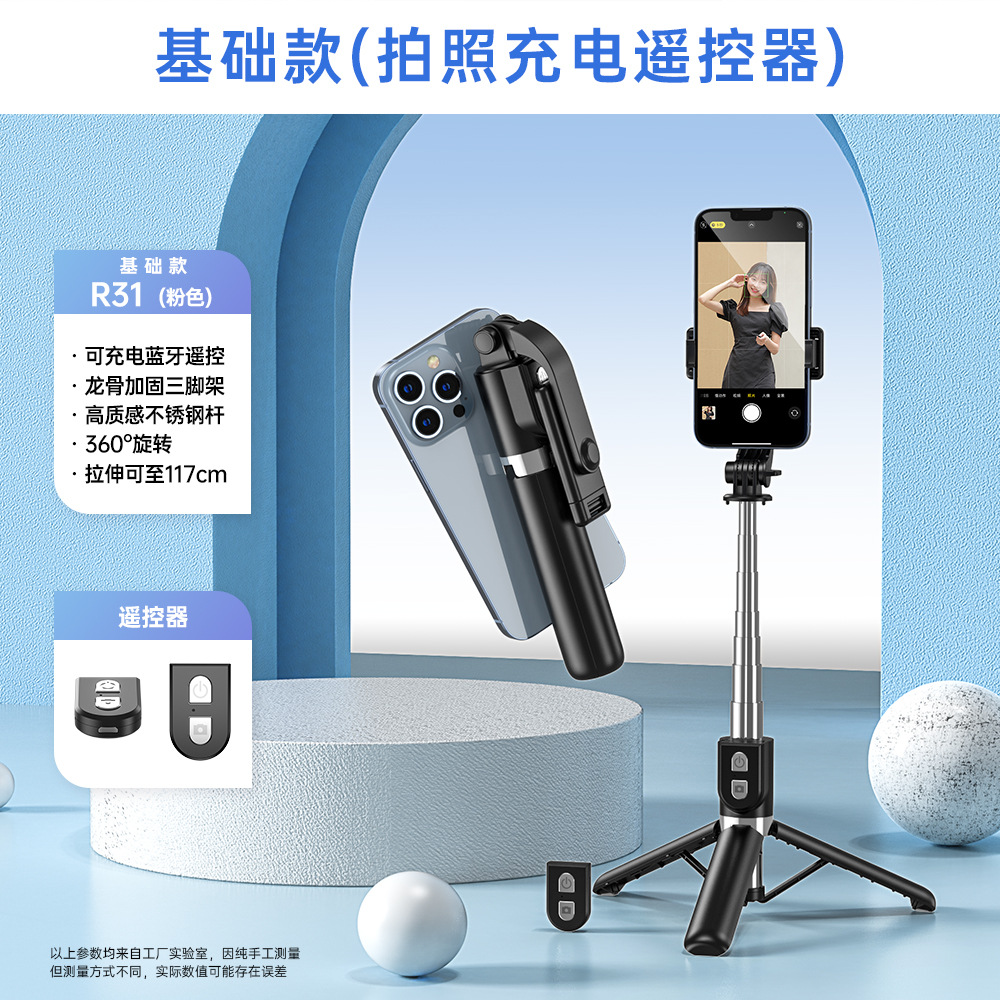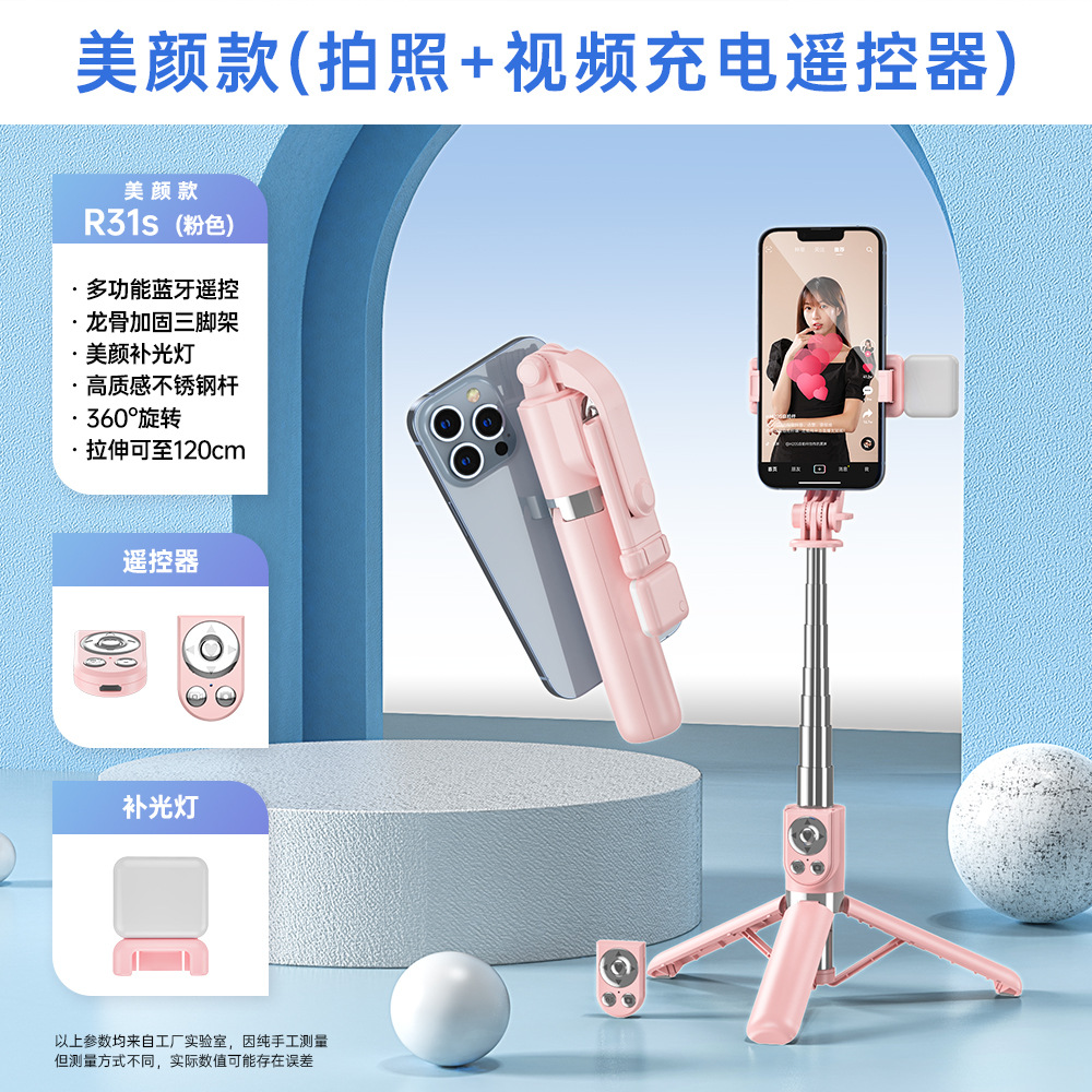 휴대 전화 셀카 스틱 충전 블루투스 원격 제어 채우기 조명 데스크탑 바닥 강화 삼각대 통합 라이브 방송 브래킷