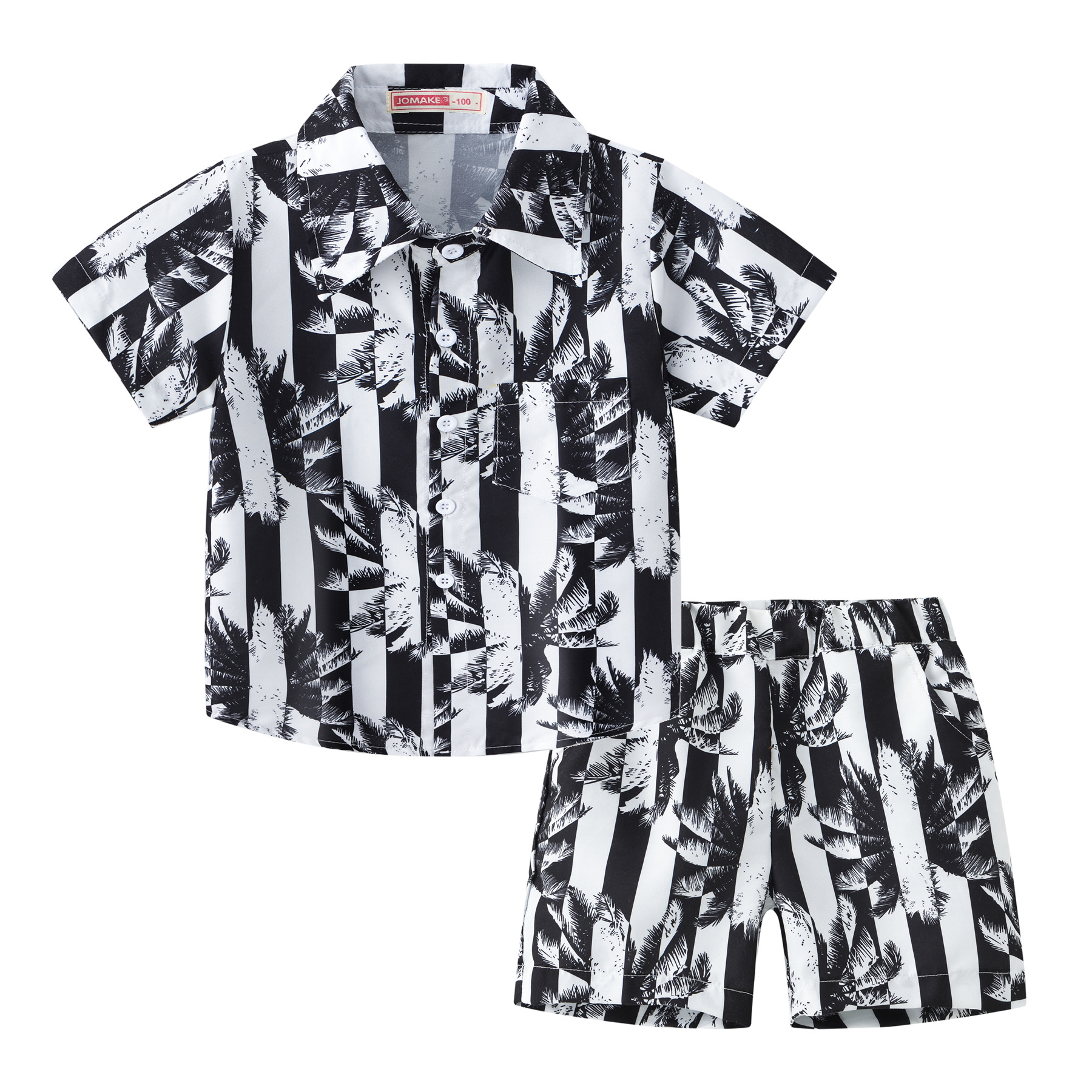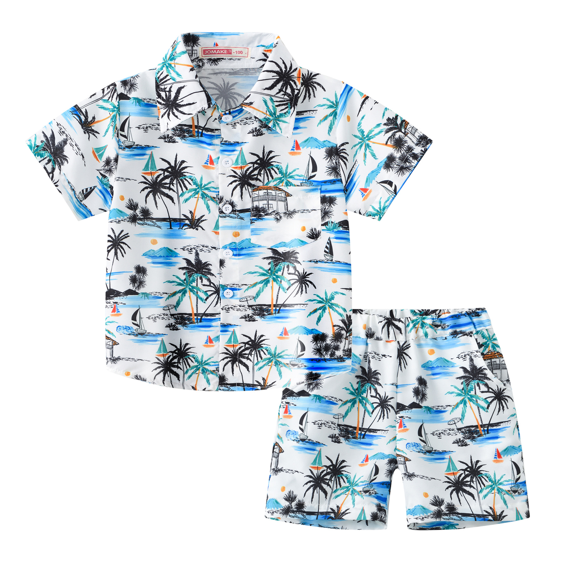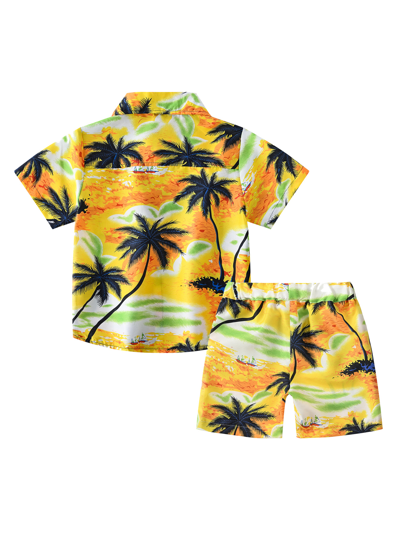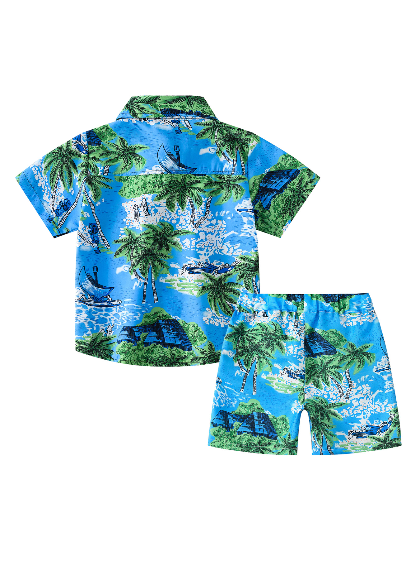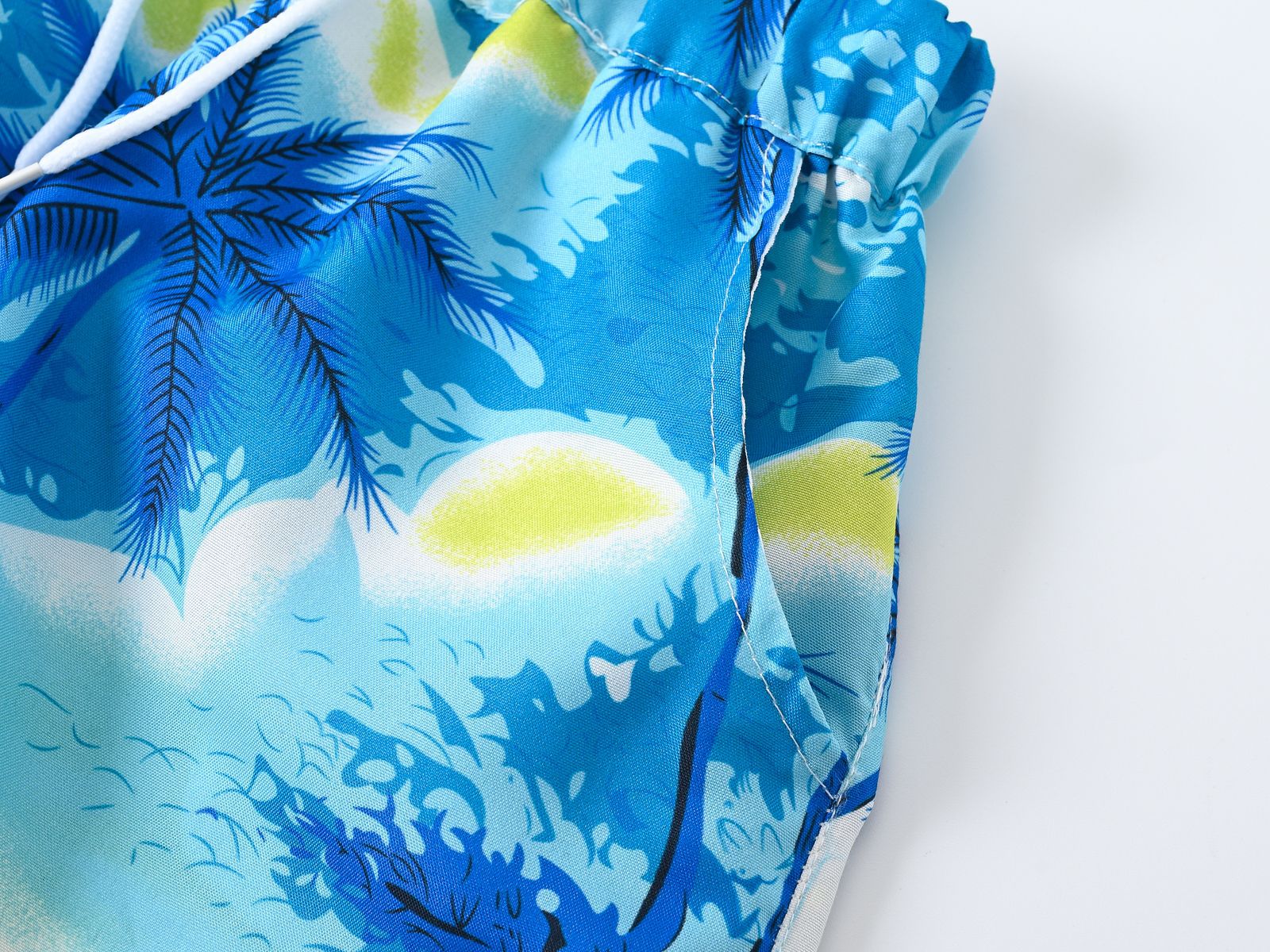 해변 스타일 휴일 스타일 해변 캐주얼 인쇄 코코넛 그 로브 포켓 셔츠 반바지 세트 그린 스트링 아동복 도매스토어 가기
