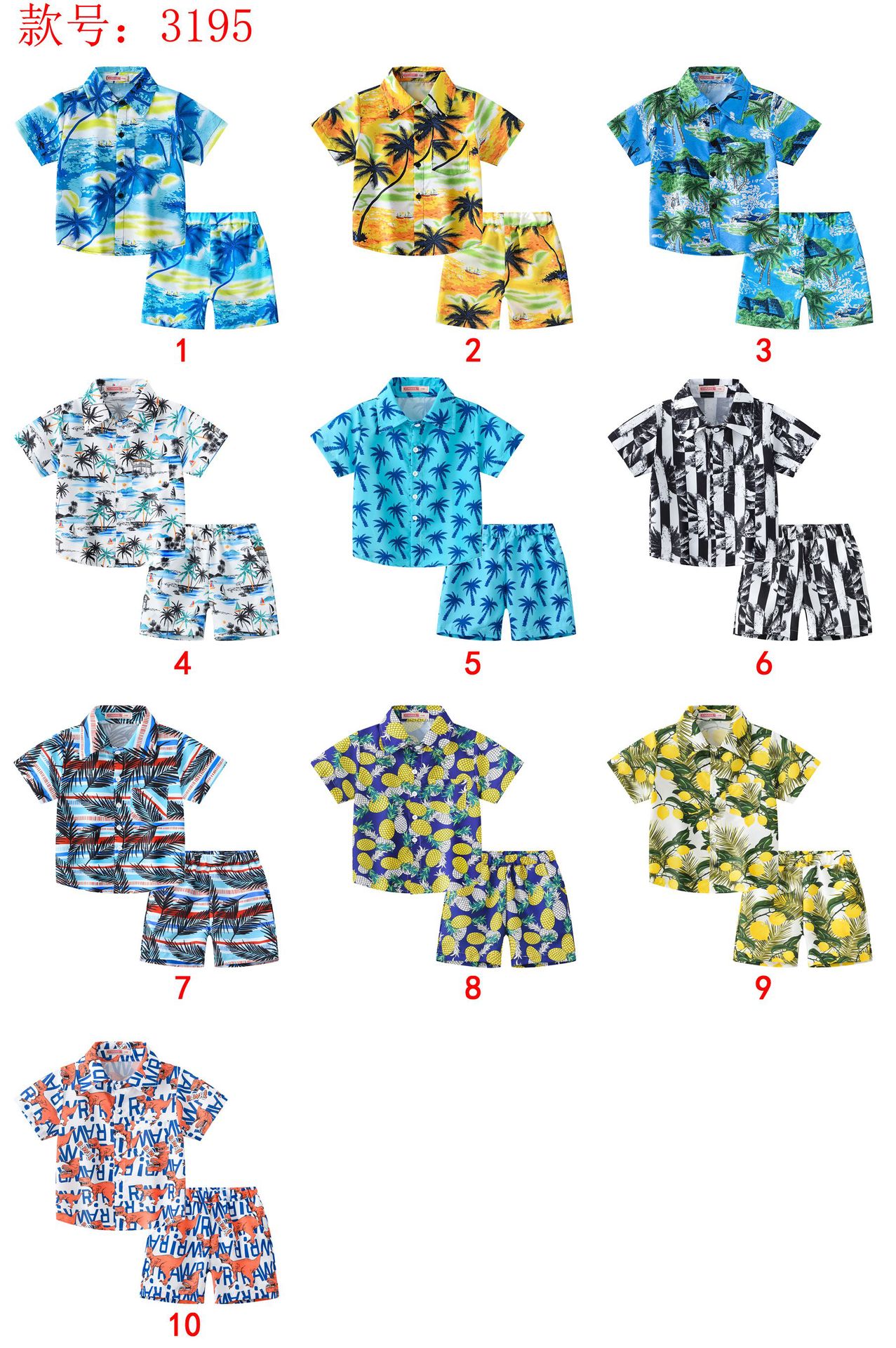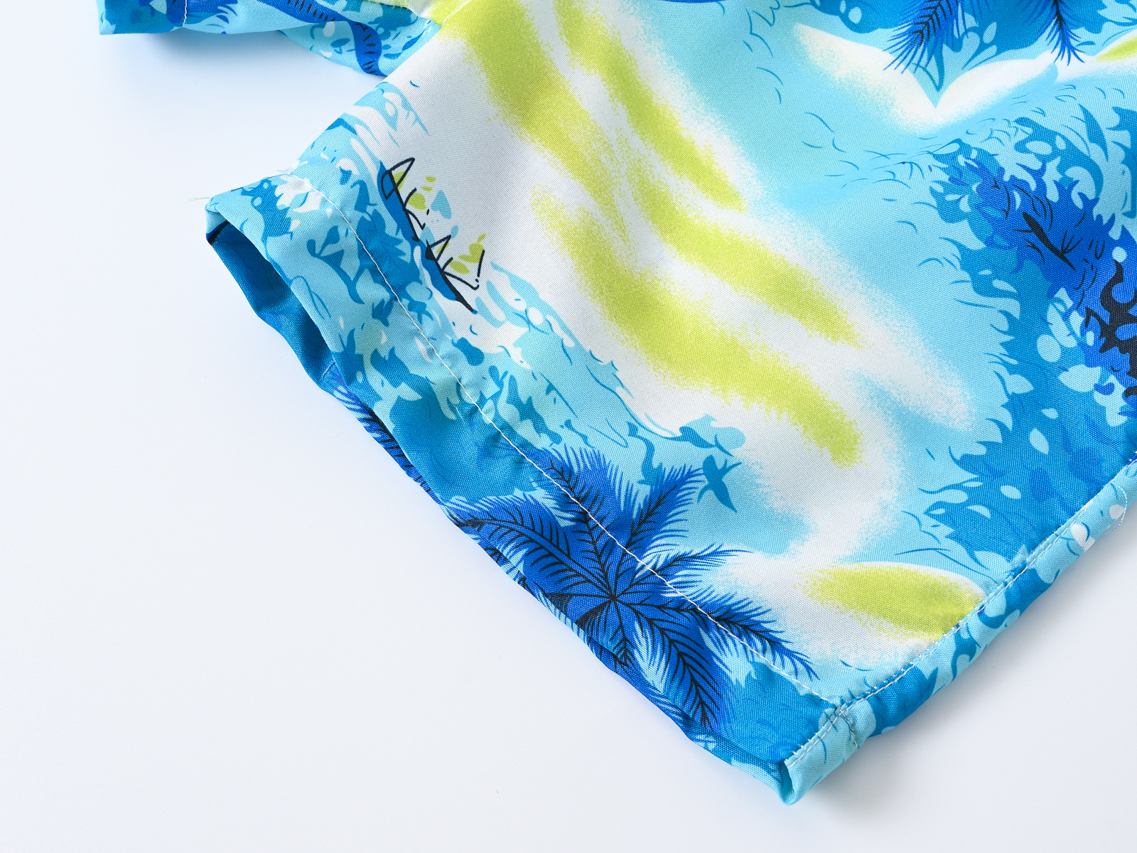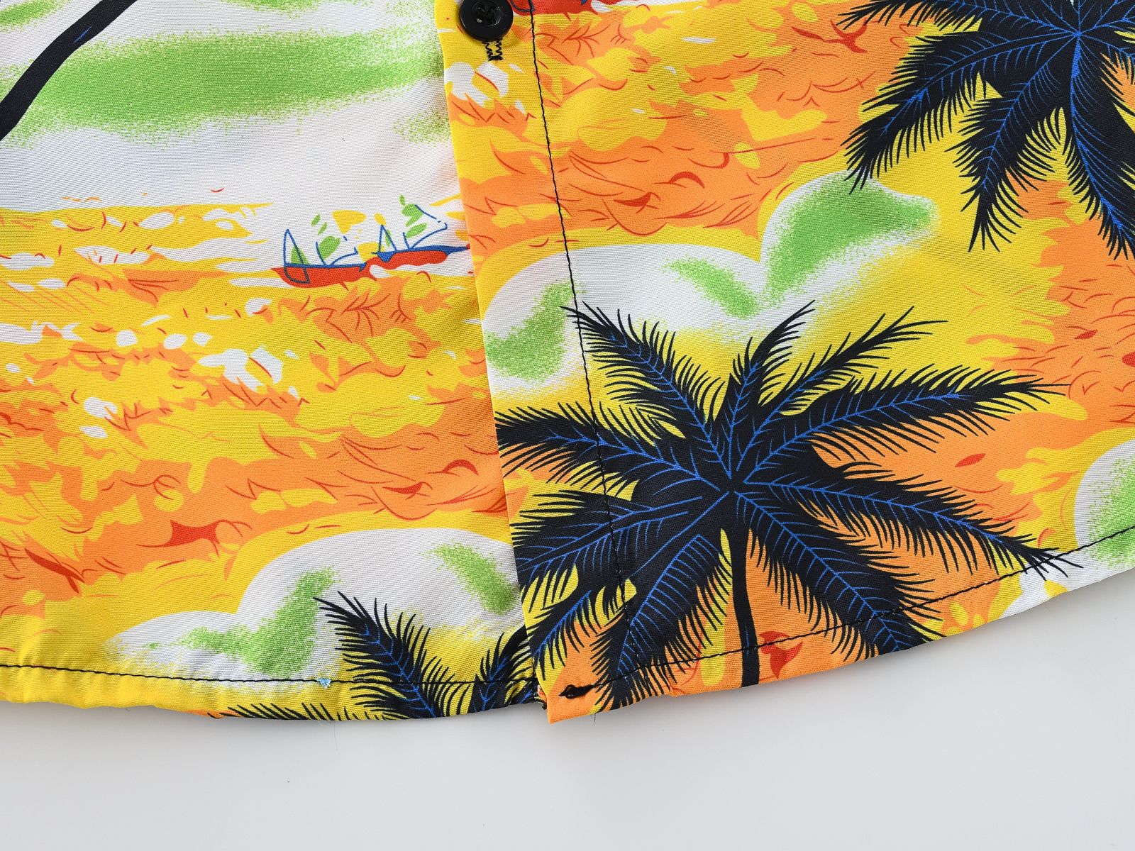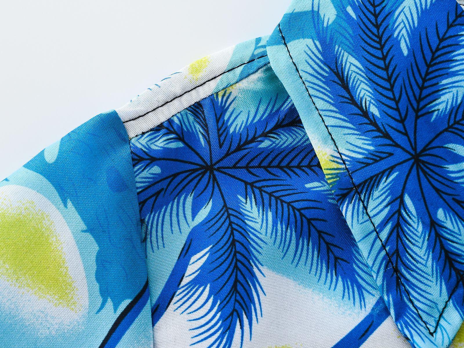해변 스타일 휴일 스타일 해변 캐주얼 인쇄 코코넛 그 로브 포켓 셔츠 반바지 세트 그린 스트링 아동복 도매스토어 가기