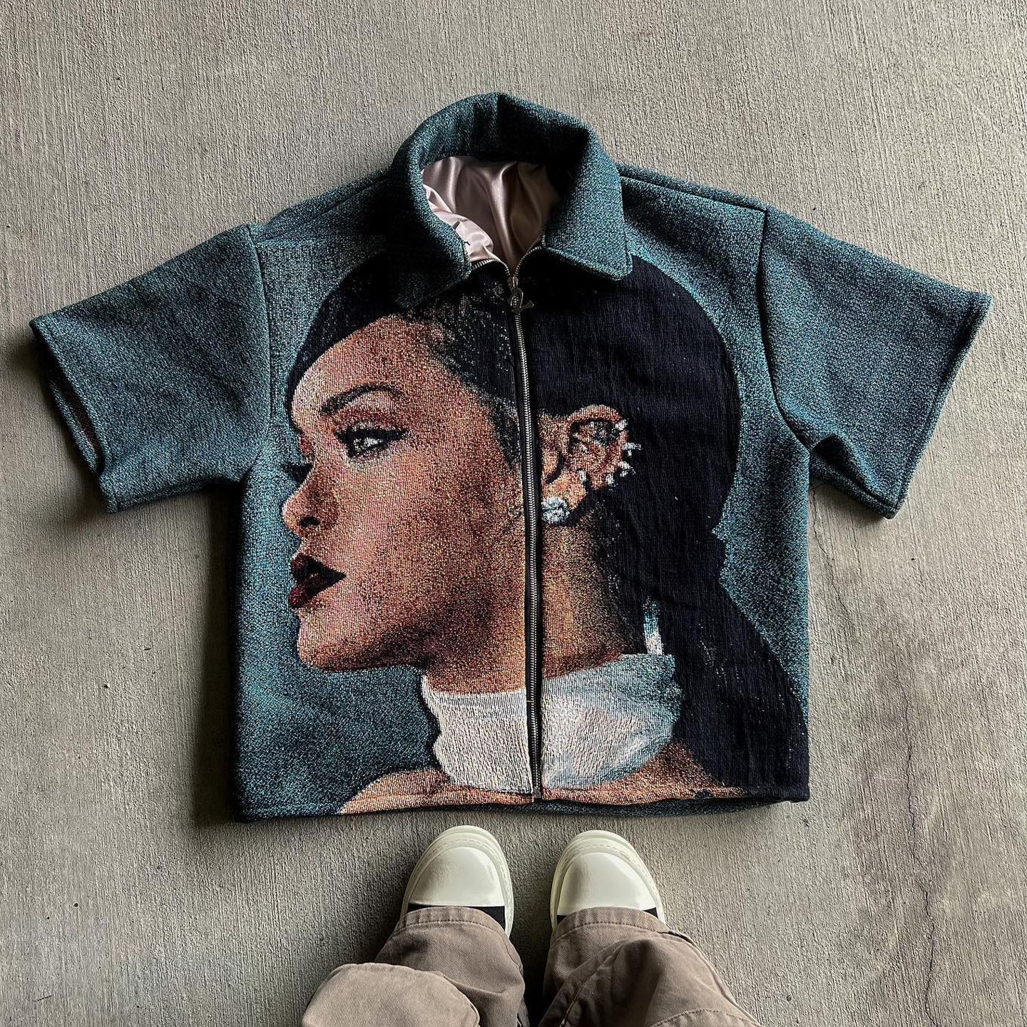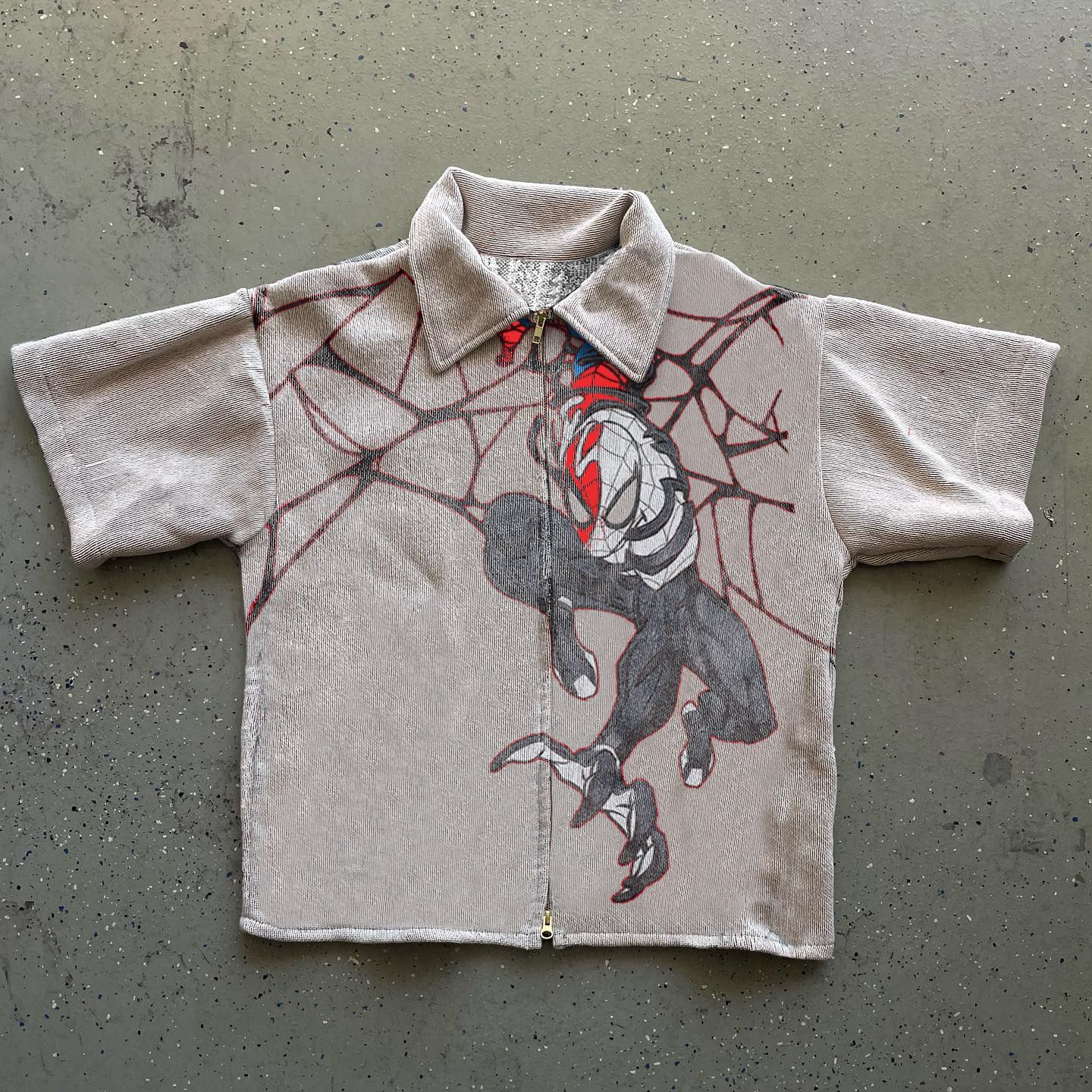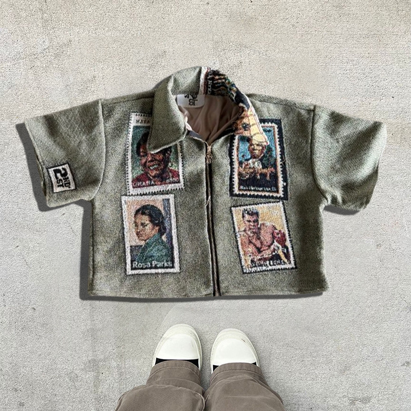 지퍼 반팔 2024 아마존 국경 새로운 여름 3D 디지털 인쇄 남성 캐주얼 느슨한 반팔 티셔츠