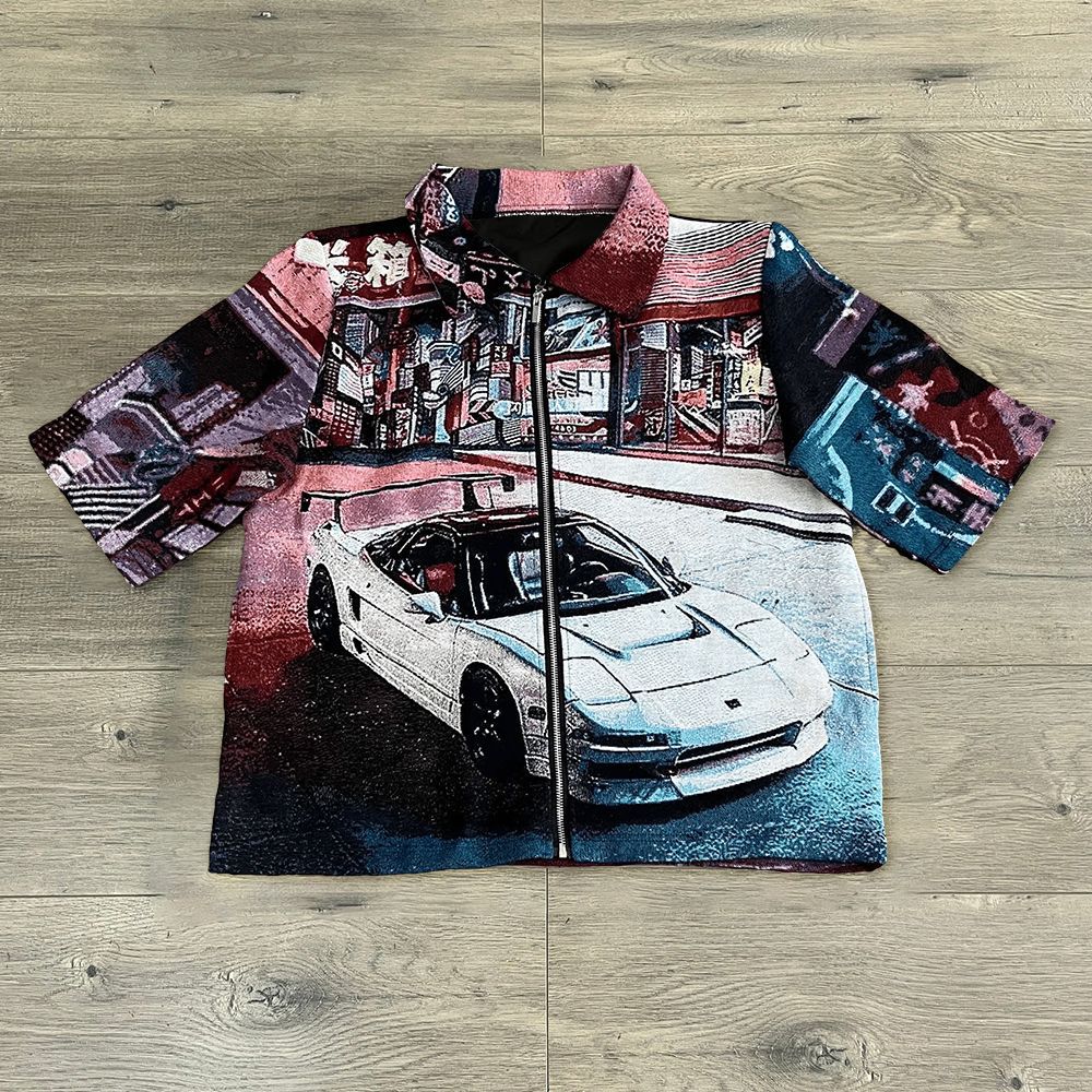 지퍼 반팔 2024 아마존 국경 새로운 여름 3D 디지털 인쇄 남성 캐주얼 느슨한 반팔 티셔츠스토어 가기