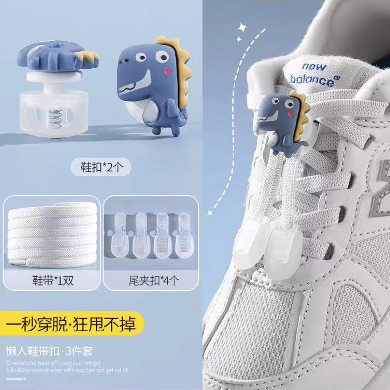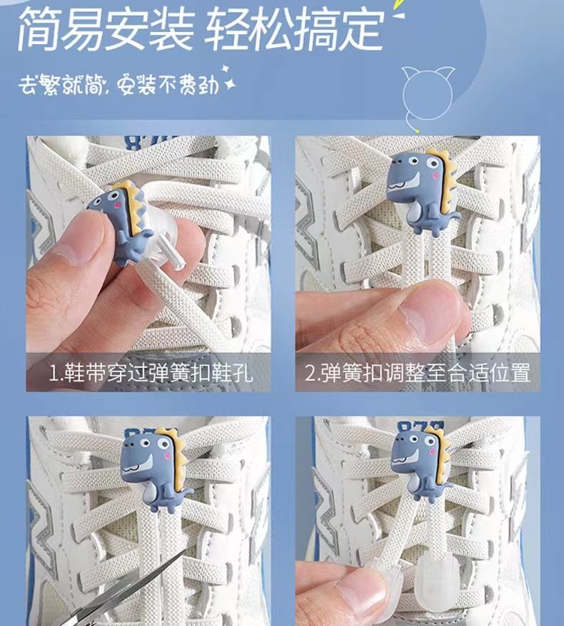 • 파란색 작은 공룡 탄성 신발끈 한 쌍