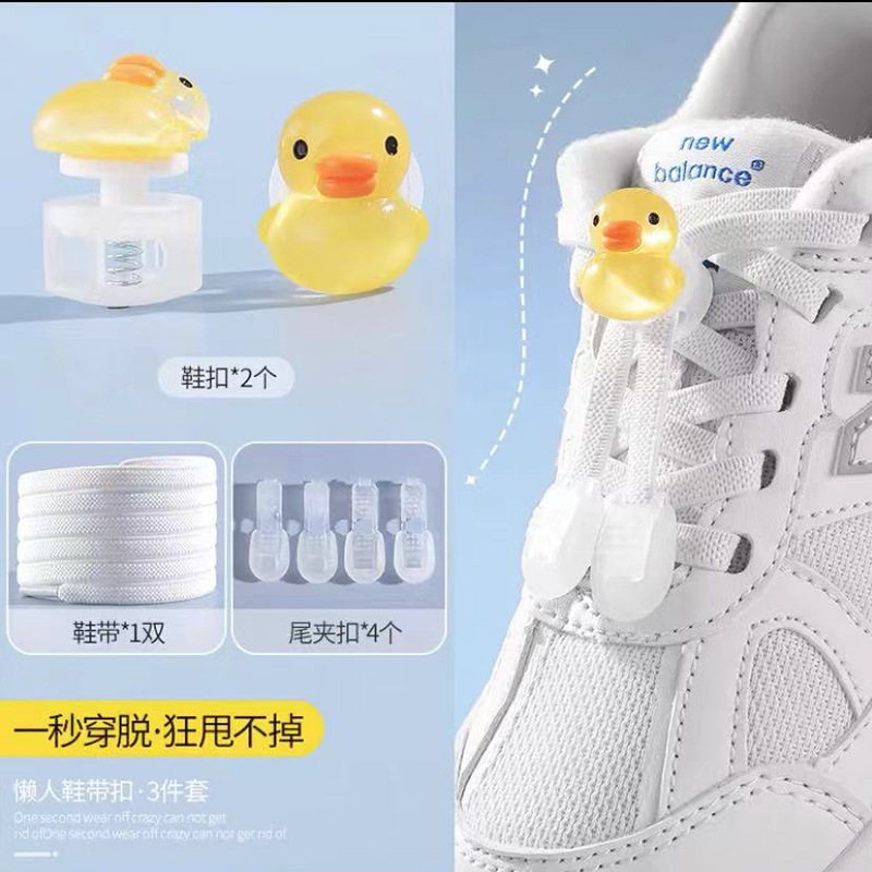 • 작은 노란색 오리 탄성 신발끈 한 쌍