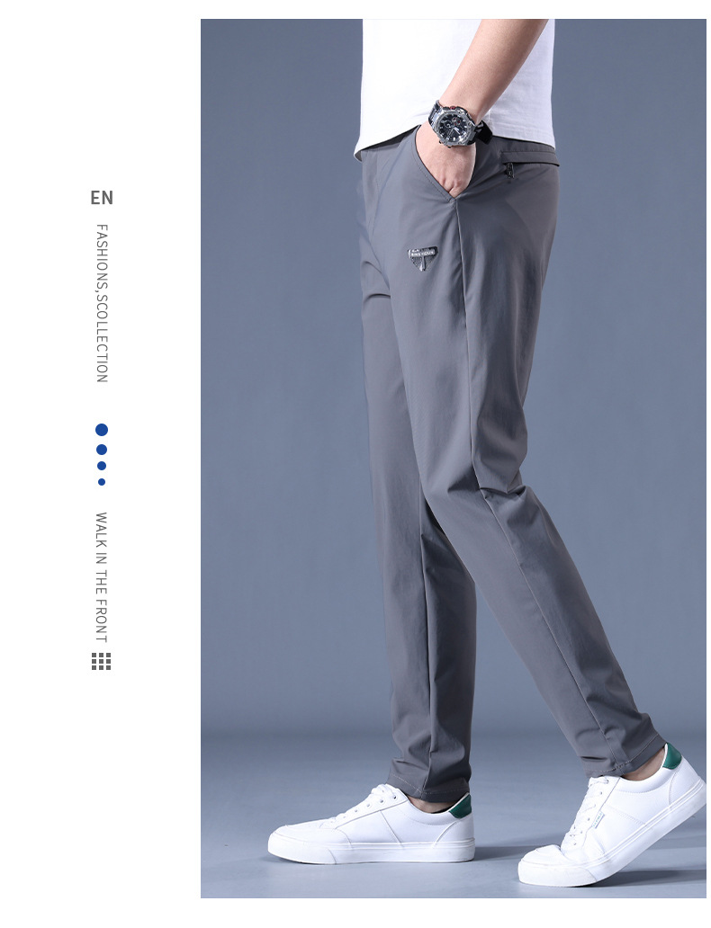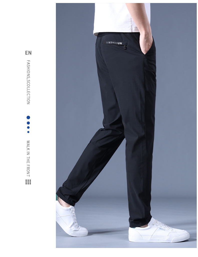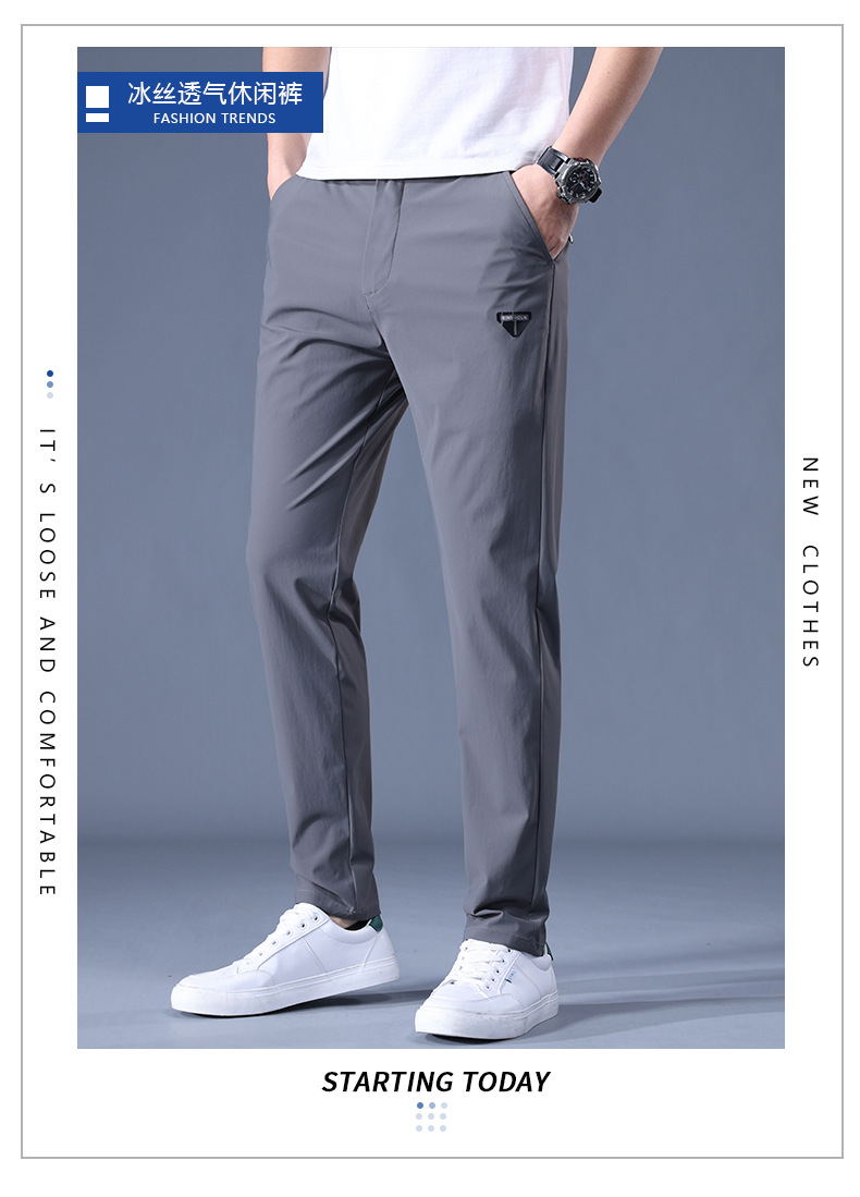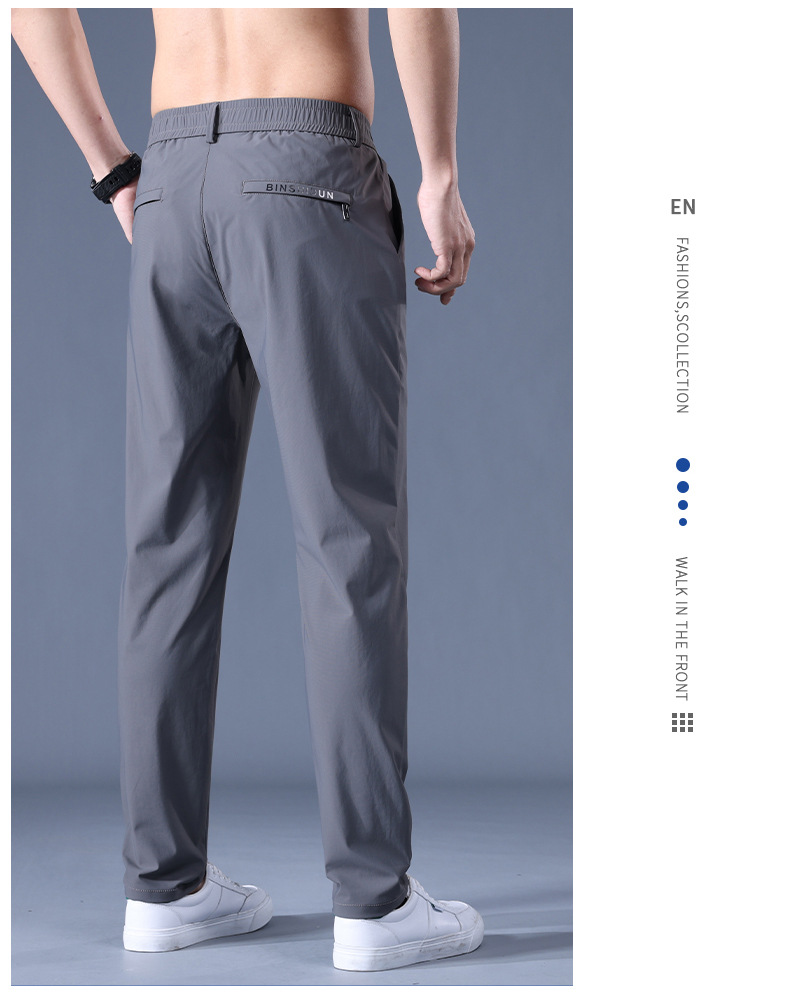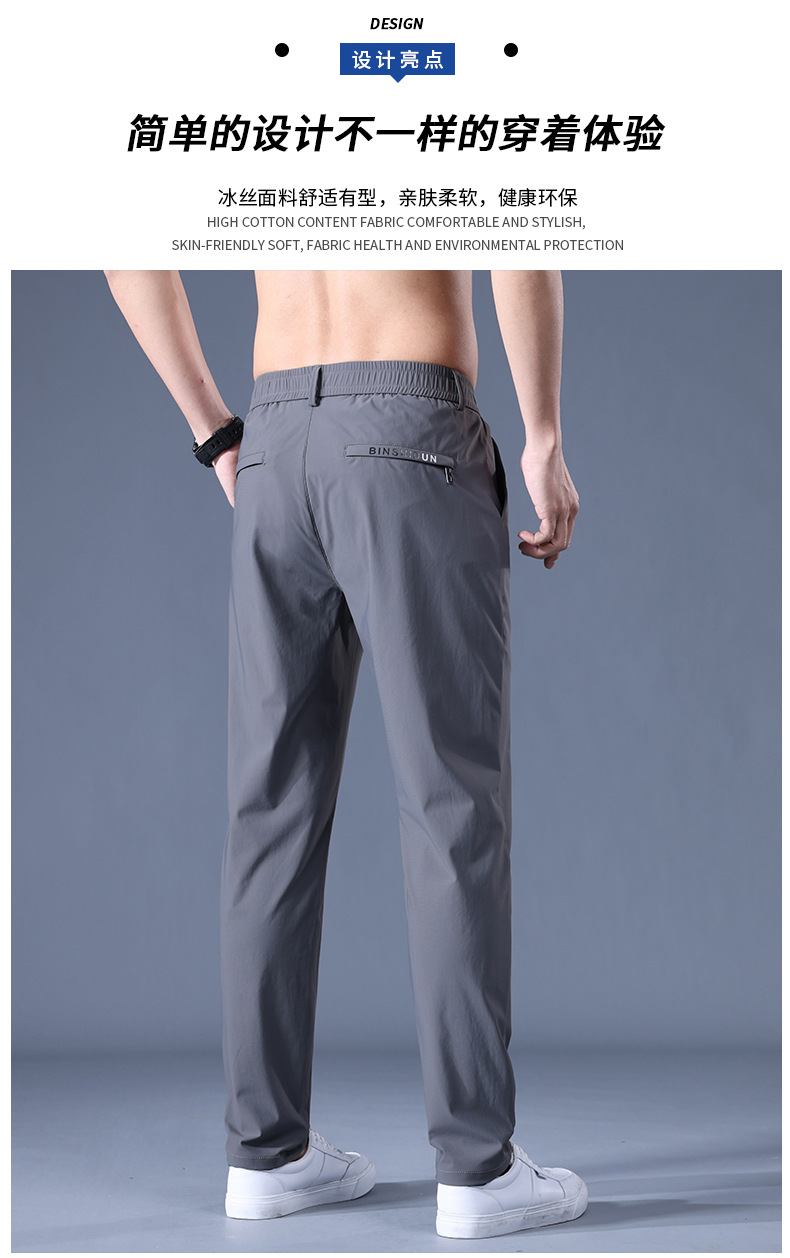 하이 스트레치 아이스 실크 팬츠 2023 여름 새 남성 캐주얼 바지 남성용 경량 통기성 속건 스트레이트 롱 팬츠스토어 가기