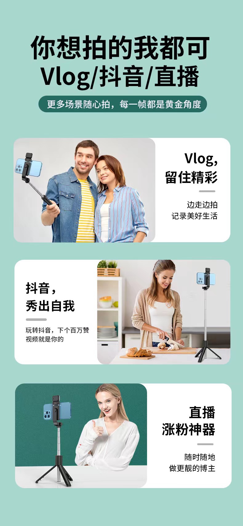 새로운 삼각대 휴대폰 블루투스 셀카봉 연장형 1.1m 미니 접이식 휴대용 셀카 도구스토어 가기
