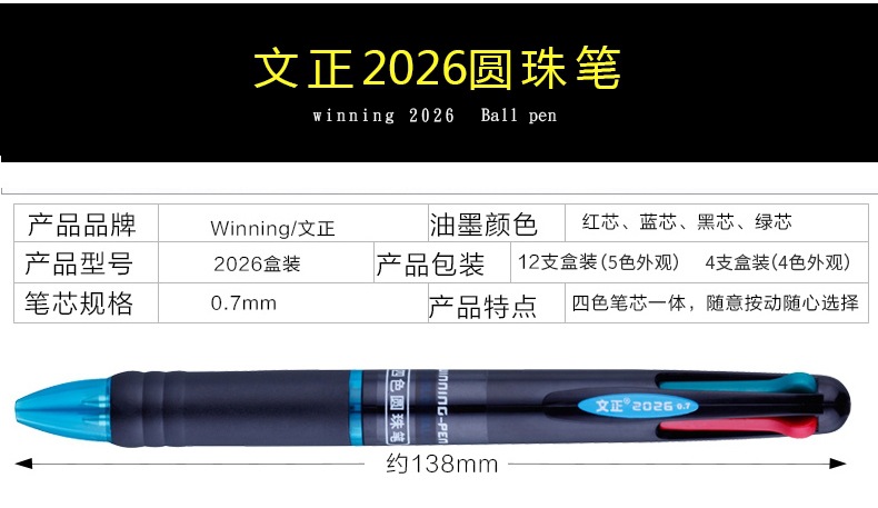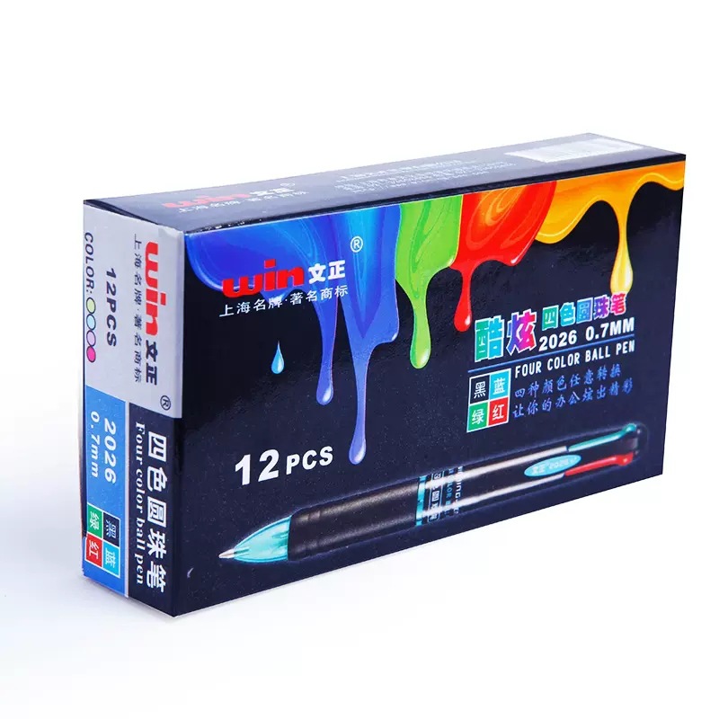 Wen Zheng 2026 4 색 크리에이티브 프레스 볼펜 학생 사무실 문구 리필 다기능 마킹 노트스토어 가기
