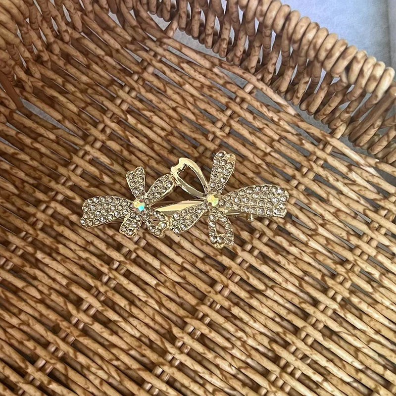 정교한 인기 한국 헤어핀 소녀용 리본 진주 크리스탈 사이드 클립 우아한 사이드 덕빌 클립 헤어 액세서리